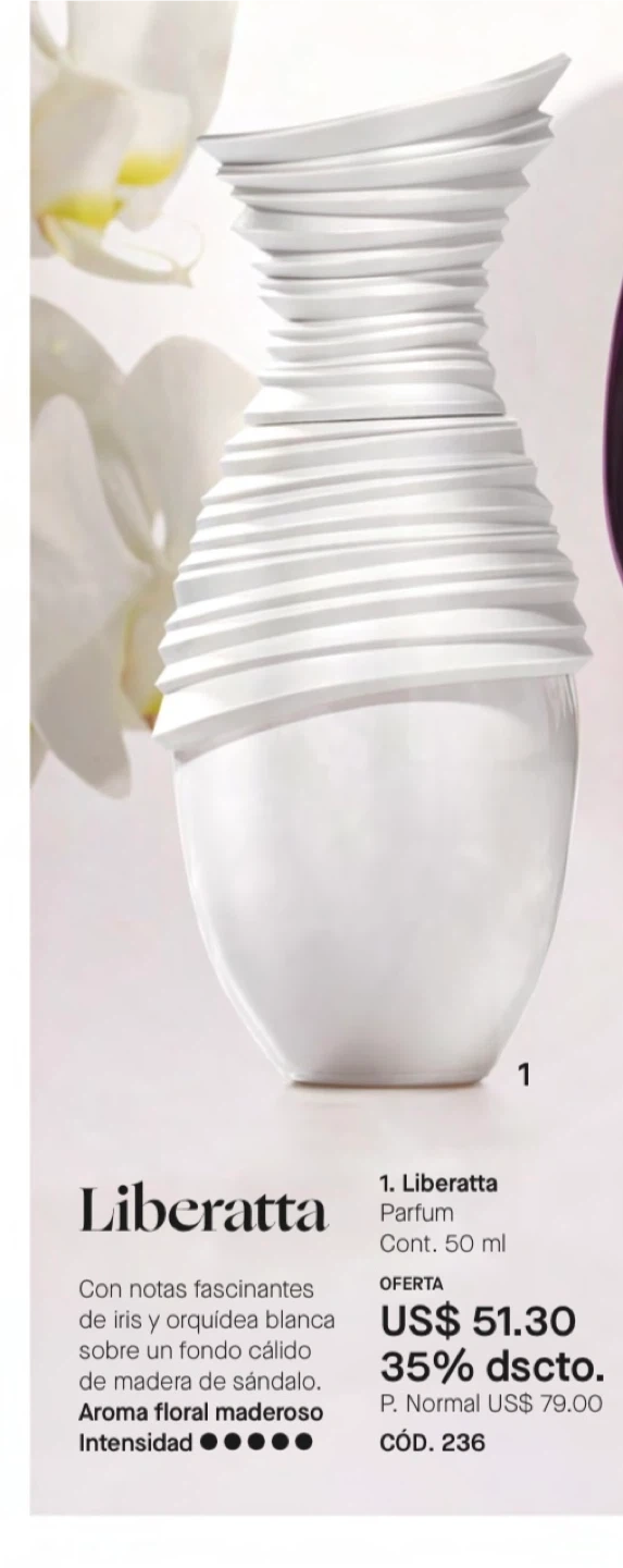 Selling a bottle of Liberatta Parfum by Yanbal! This perfume comes in a 50 ml (1.6 fl oz) bottle. It's a floral, woody fragrance with notes of iris, white orchid, and sandalwood. A great scent for everyday wear!