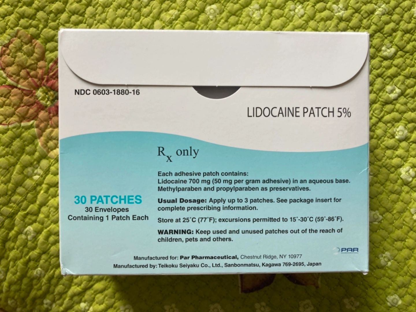 30 patches, 1 patch per envelope. Rx Contains Lidocaine 700 mg (50 mg per gram adhesive). Methylparaben and propylparaben as preservatives. See package insert for complete information. Pick up and by cash 🥕