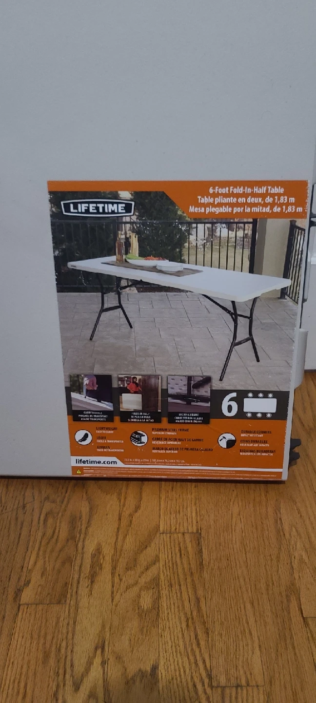 18Selling a LIFETIME 6-Foot Fold-In-Half Table. It's in like new condition and ready for a new home! This table is perfect for indoor or outdoor use, whether you need extra space for dining, crafts, or hobbies. It's lightweight and portable, making it easy to set up and store. The table comfortably seats 6 people.