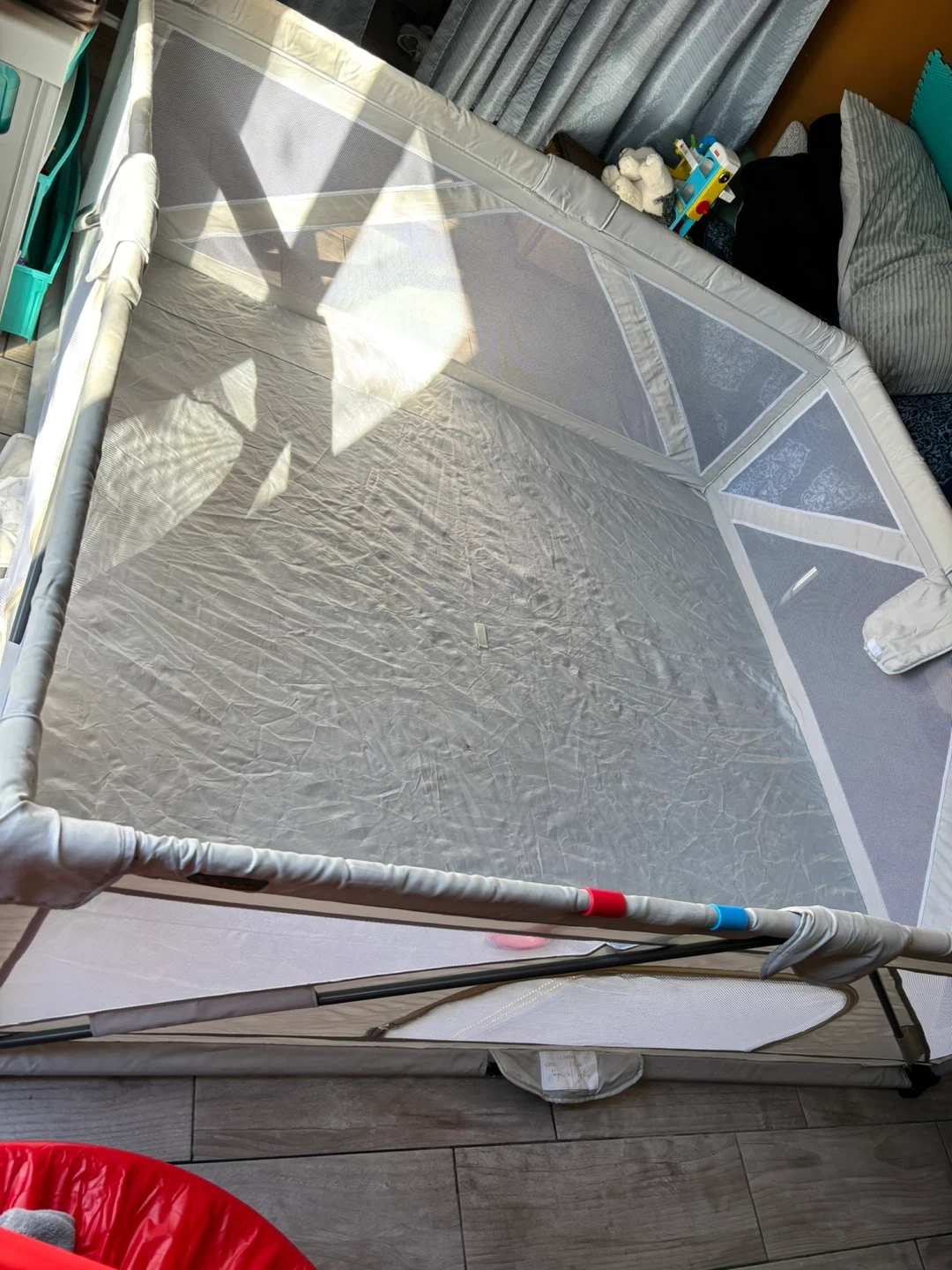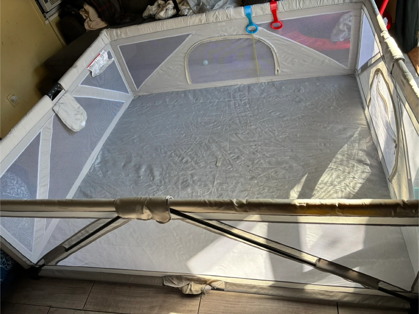 65Selling a used Evenflo Versatile Play Space in great condition! It's perfect for keeping your little one safe and entertained. It folds up easily for storage and travel!
