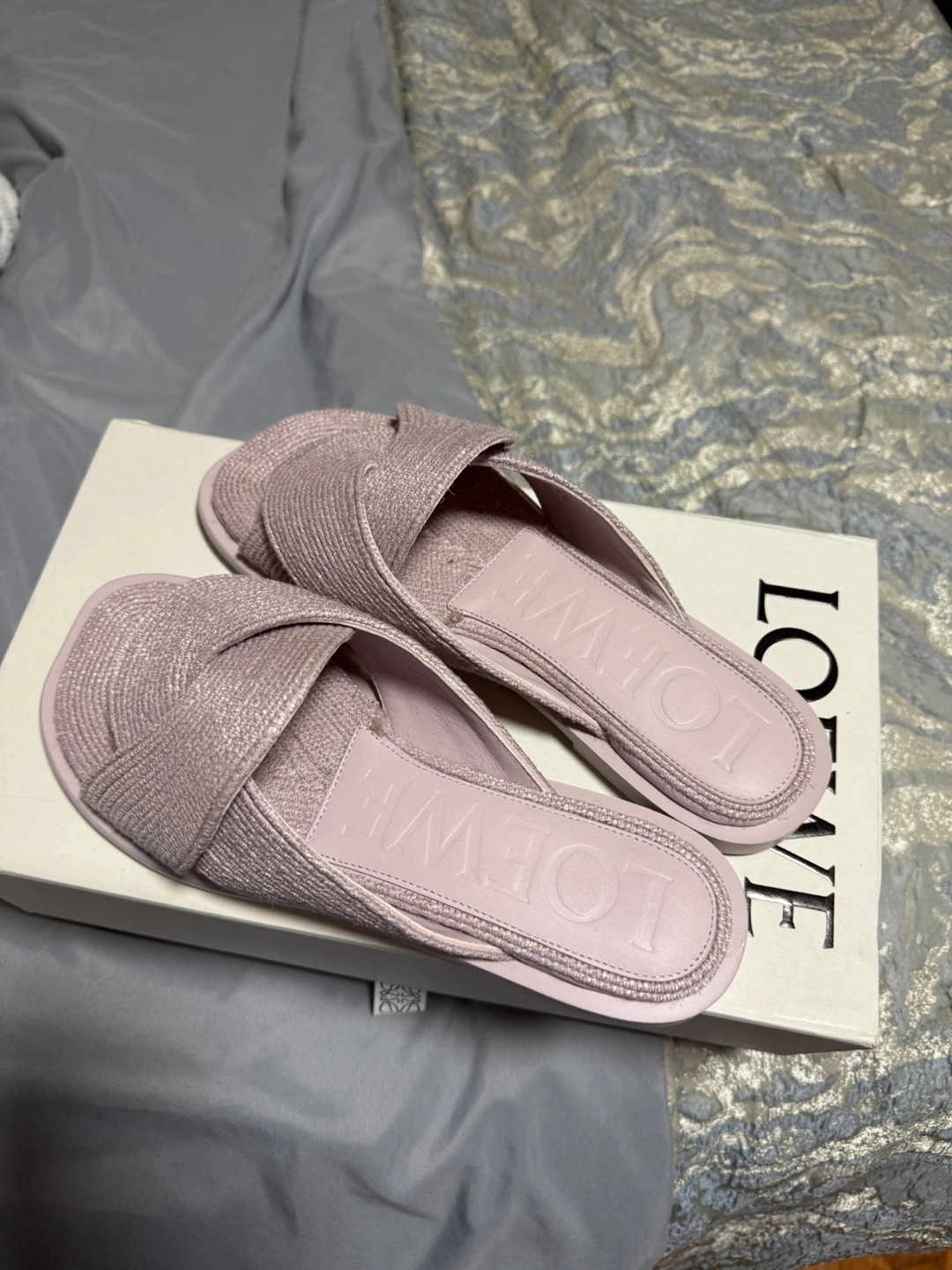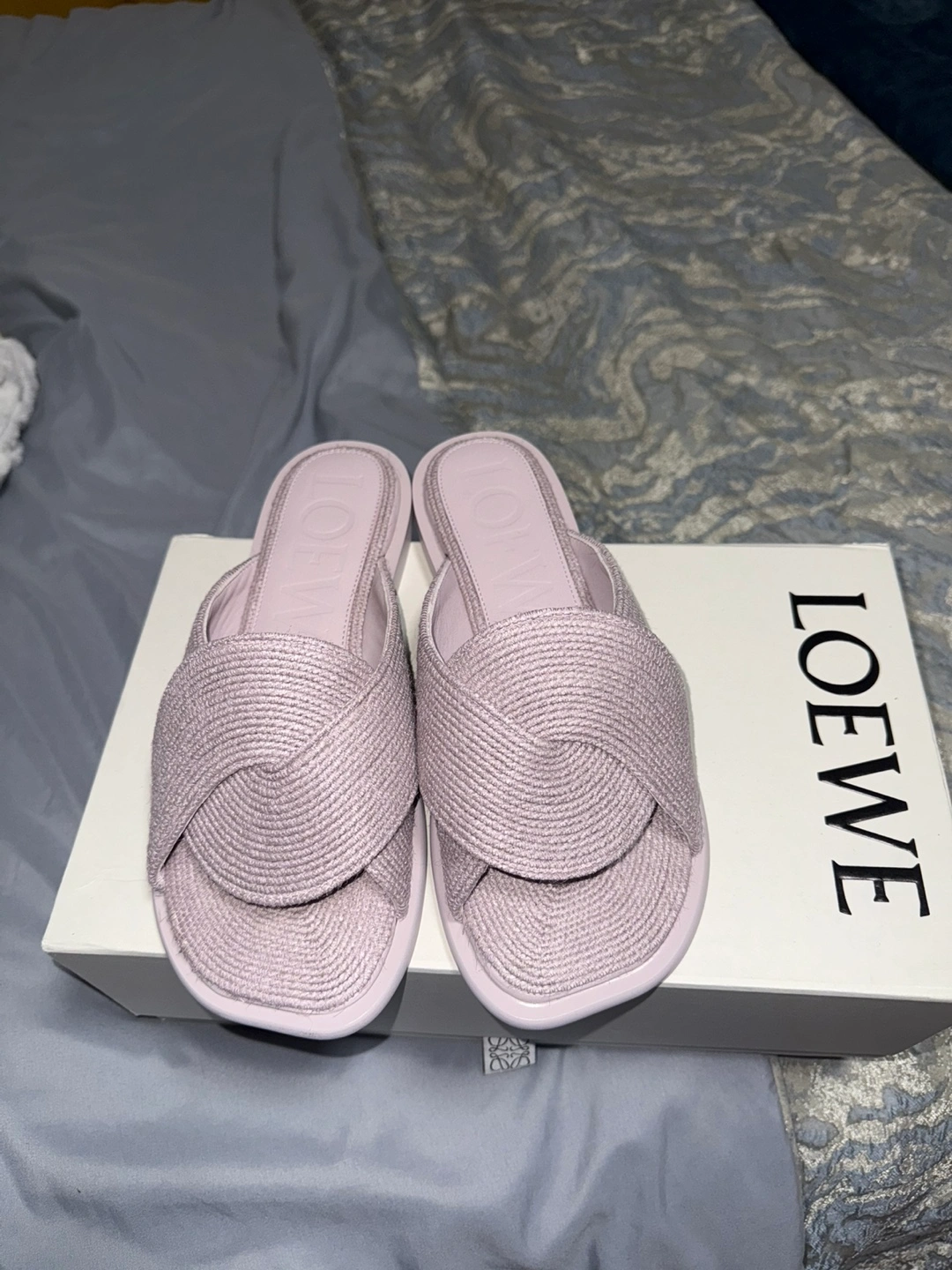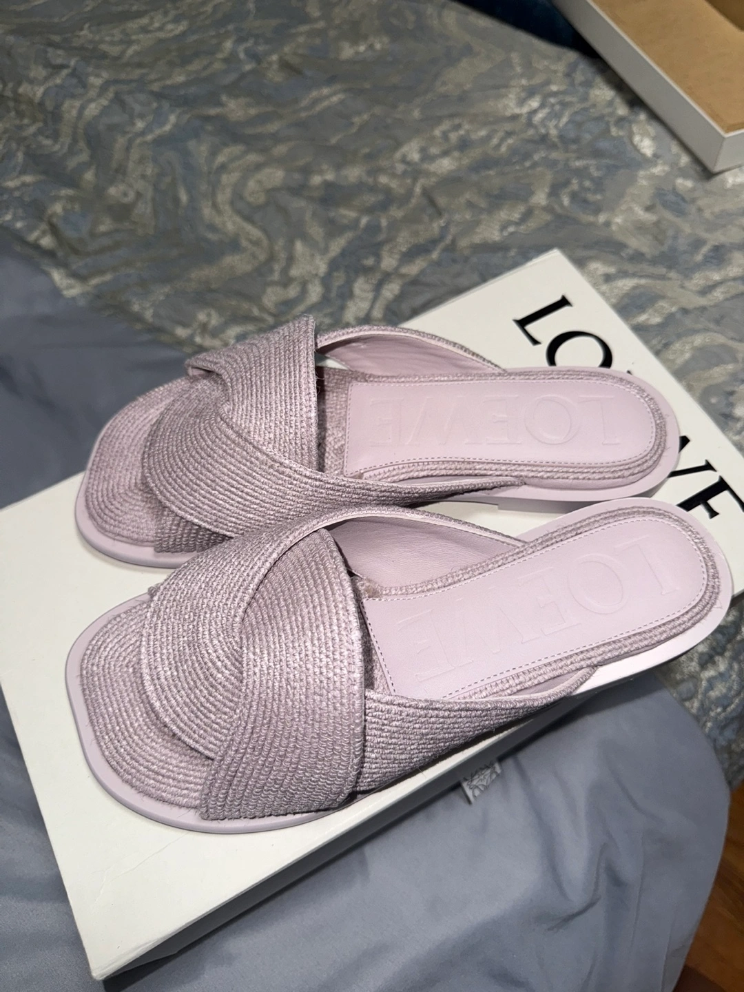 Selling a pair of Loewe Font slides. They're in a lovely lilac color and come with the box! Brand new, never worn. Size 39