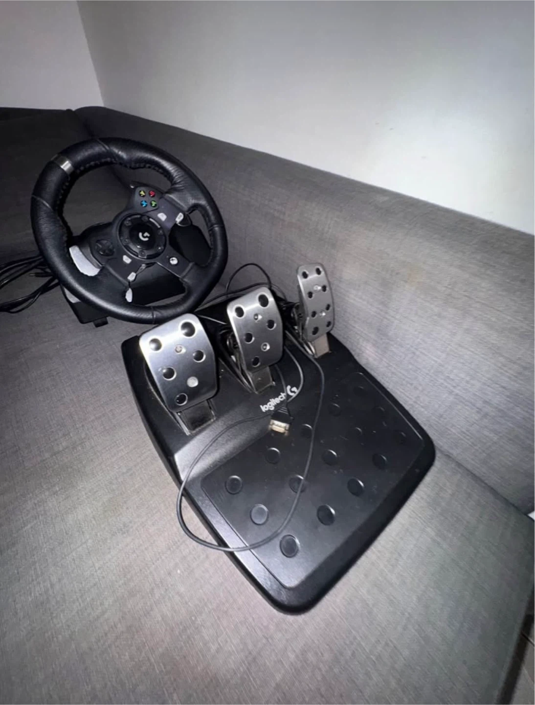 Selling a Logitech G920 racing wheel and pedals. It's in great condition and ready for some serious racing action! Includes the wheel, pedals, and necessary cables to get you started. Perfect for Xbox and PC gaming!