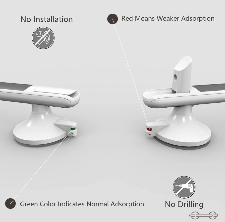 687Selling a brand new LORESJOY Suction Shower Grab Bar, still in its original packaging! This grab bar features a thickened suction cup for a super high load-bearing capacity without falling. It also has an easy-to-grip, non-slip rubber grip to effectively increase resistance and prevent accidents. The ergonomic design includes a non-slip bump texture, and there's no drilling required for installation. The indicator lights show the adsorption status: green means normal, and red means weaker adsorption