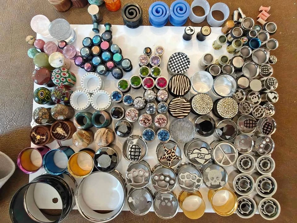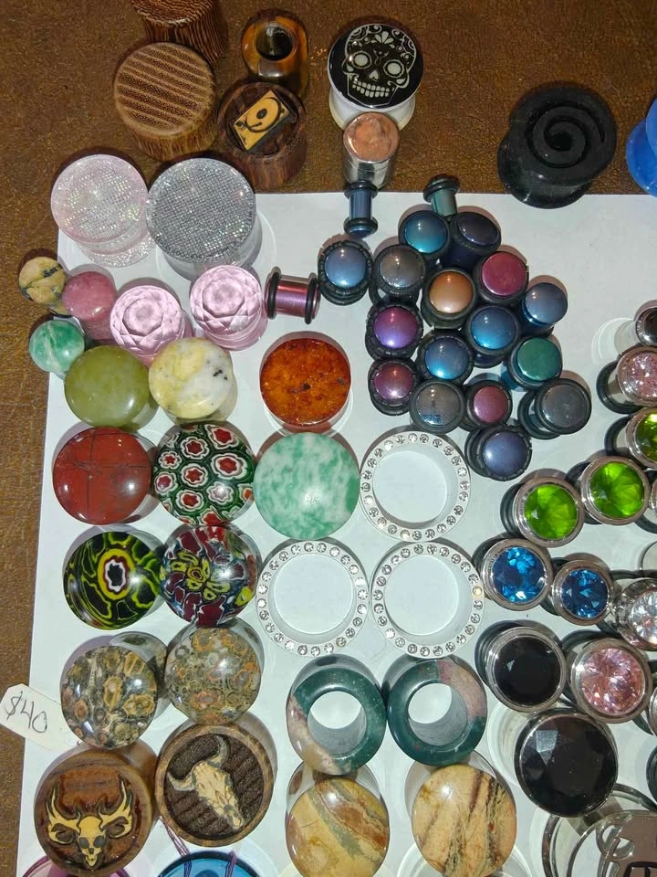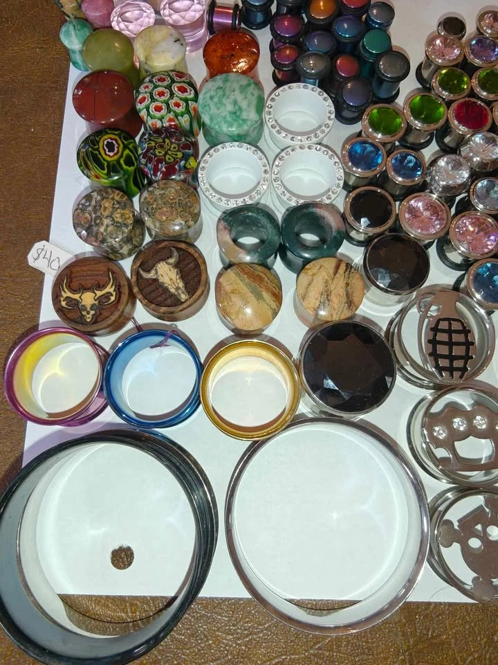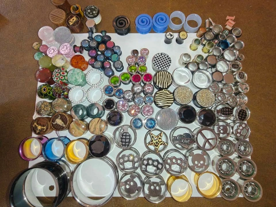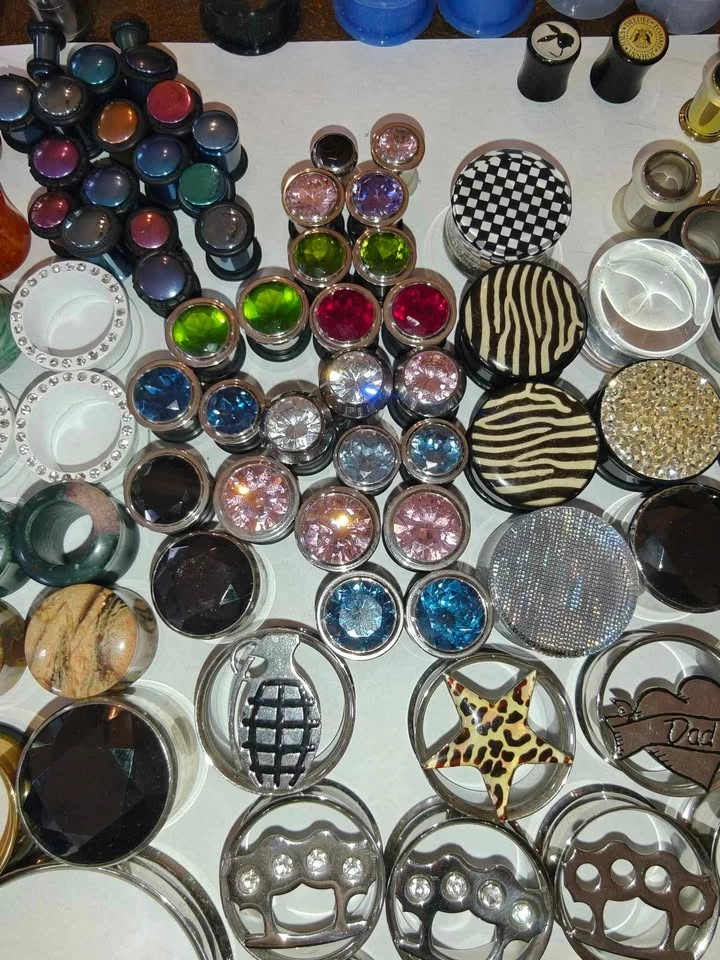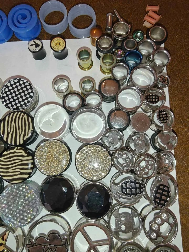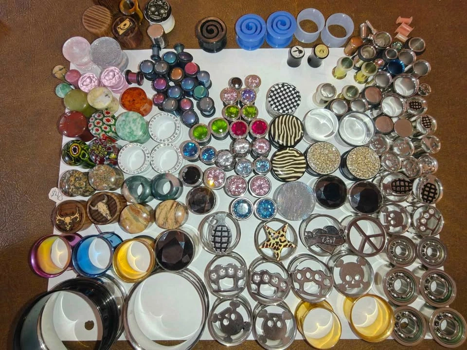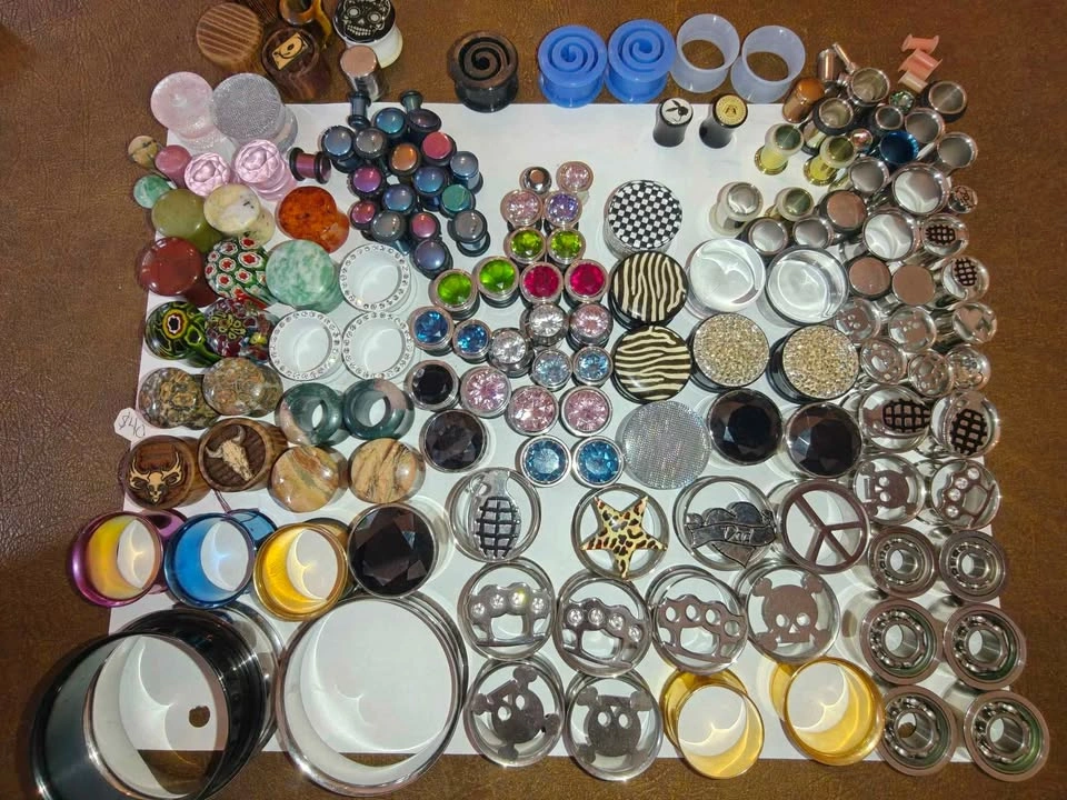 Only the Plugs in the photos, not anything else you might see. Those are listed separately. Keep in mind, most of these are metal or with gem/rhinestones. Therefore, this won't be as cheap as some of the other lots you see. 46 Pairs 163 Total Can be used alternatively for art/craft projects Given to me by a friend at Utopia before they moved spots. They sell for anywhere from $5 - $20 per *pair* depending on the size and whatnot. If you were to piece these out you could probably get $300+.