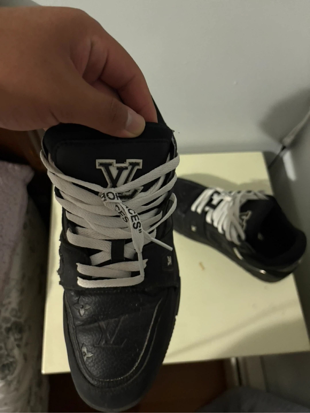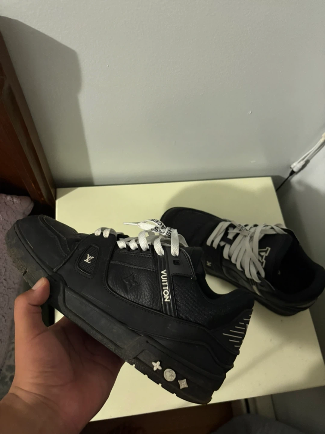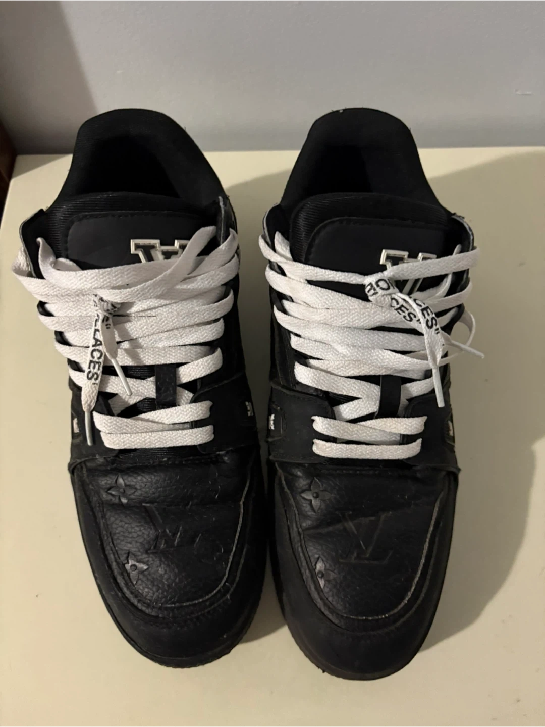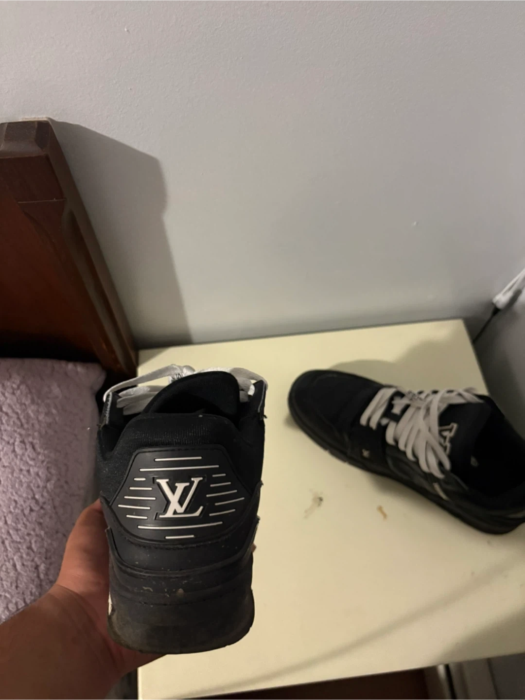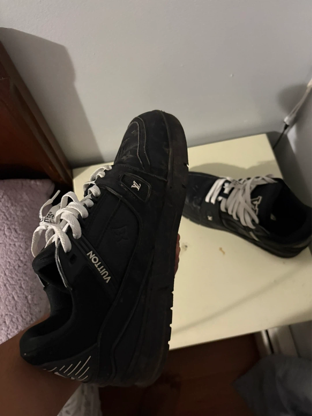 18Selling a pair of Louis Vuitton low top sneakers in black. They show some signs of wear, as you can see in the pictures, but still have a lot of life left! -feel free to ask any questions -nyc meetups