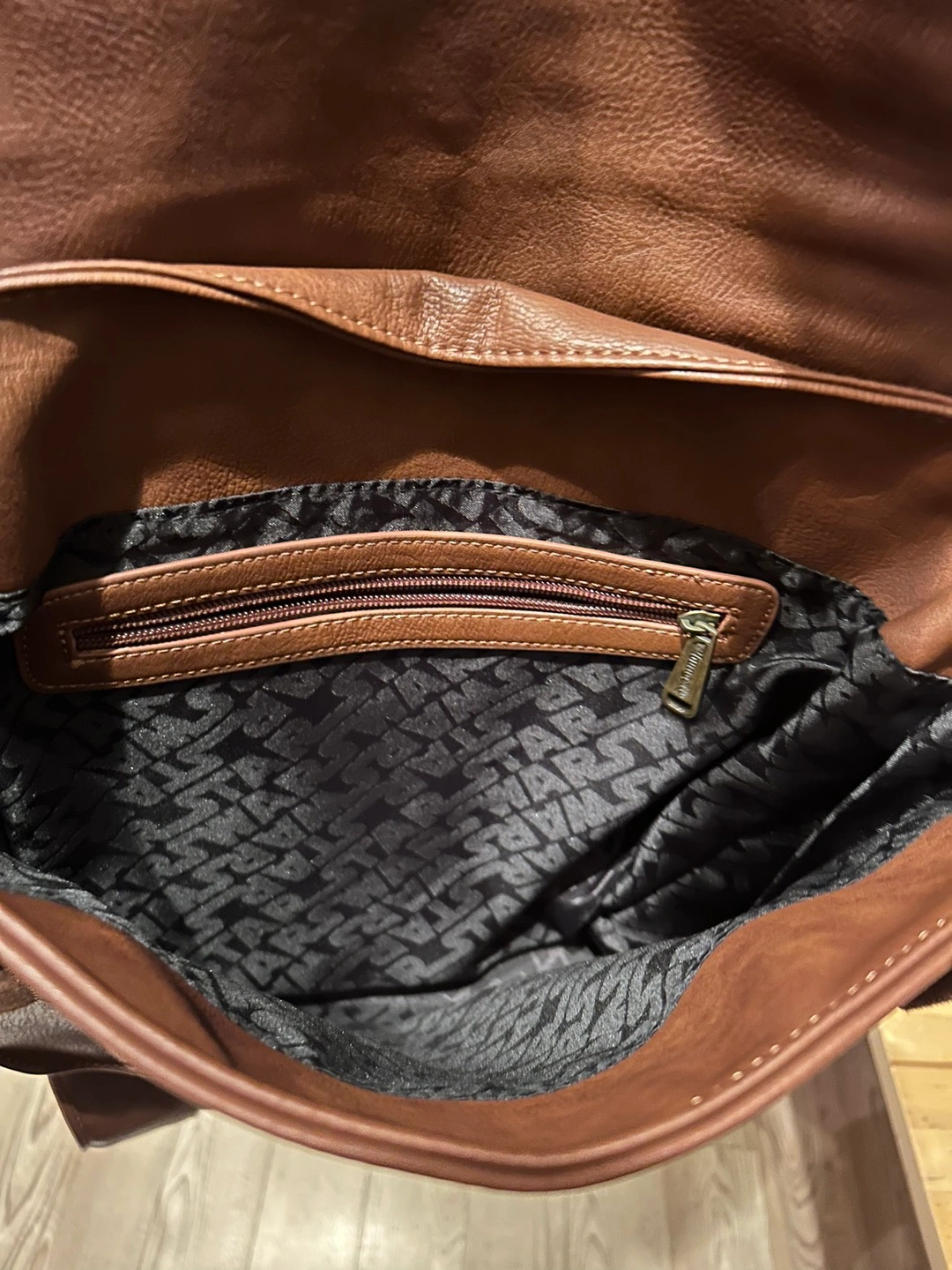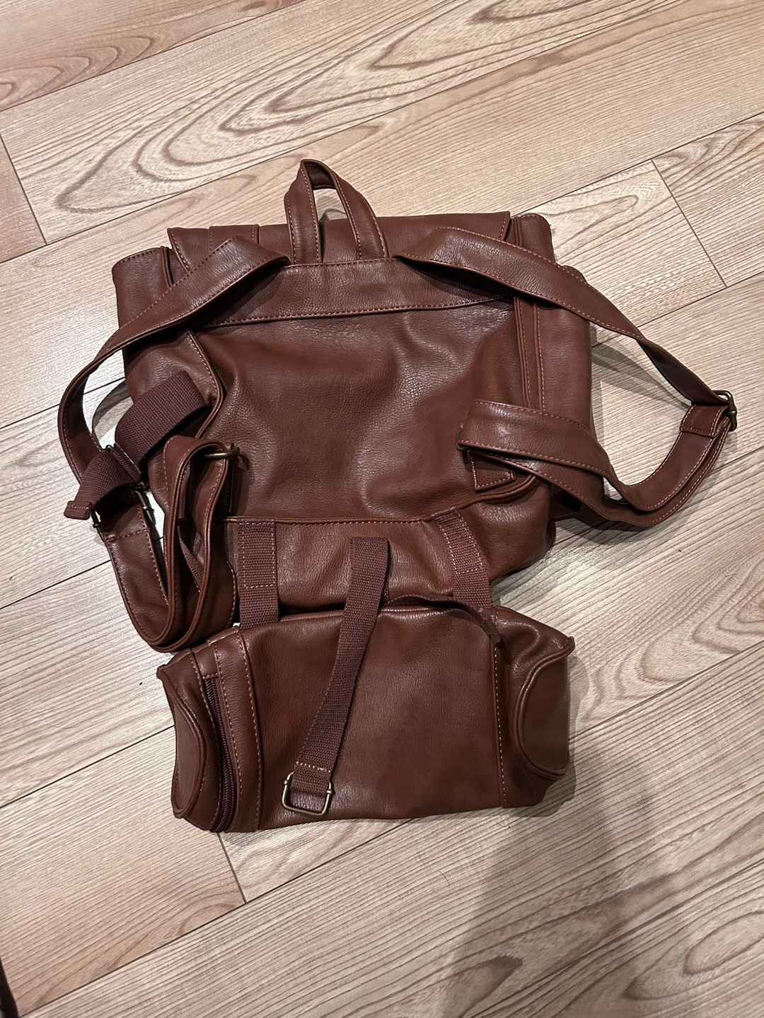 Faux leather quality, but this isn’t the flimsy cheap stuff, it is a nice weight and all top stitched.