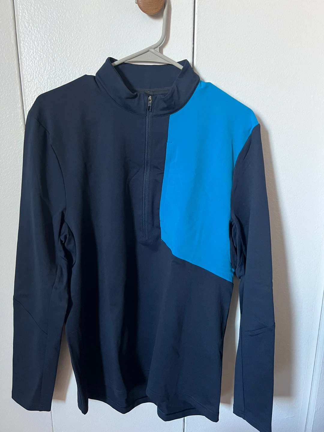 154Selling a Lululemon Division 1/2 Zip in size M! The color is a mix of navy and turquoise. This half zip is designed for warmth during low-intensity workouts. It's made with breathable, quick-drying, and sweat-wicking fabric. It also features a zippered chest pocket to stash valuables. Originally bought for $118