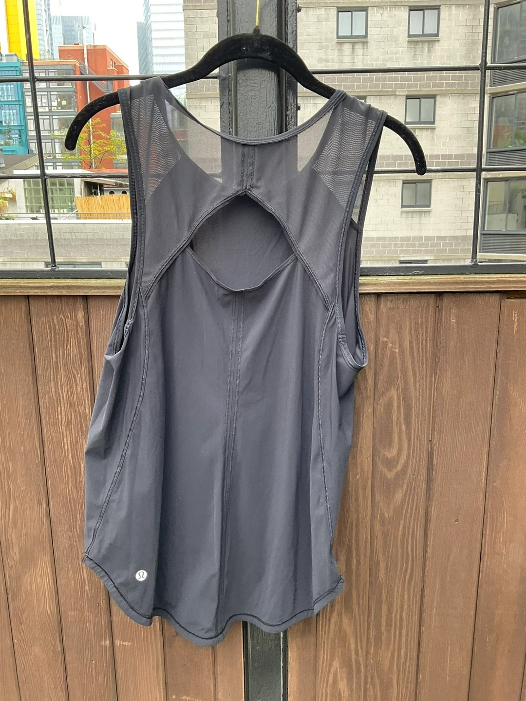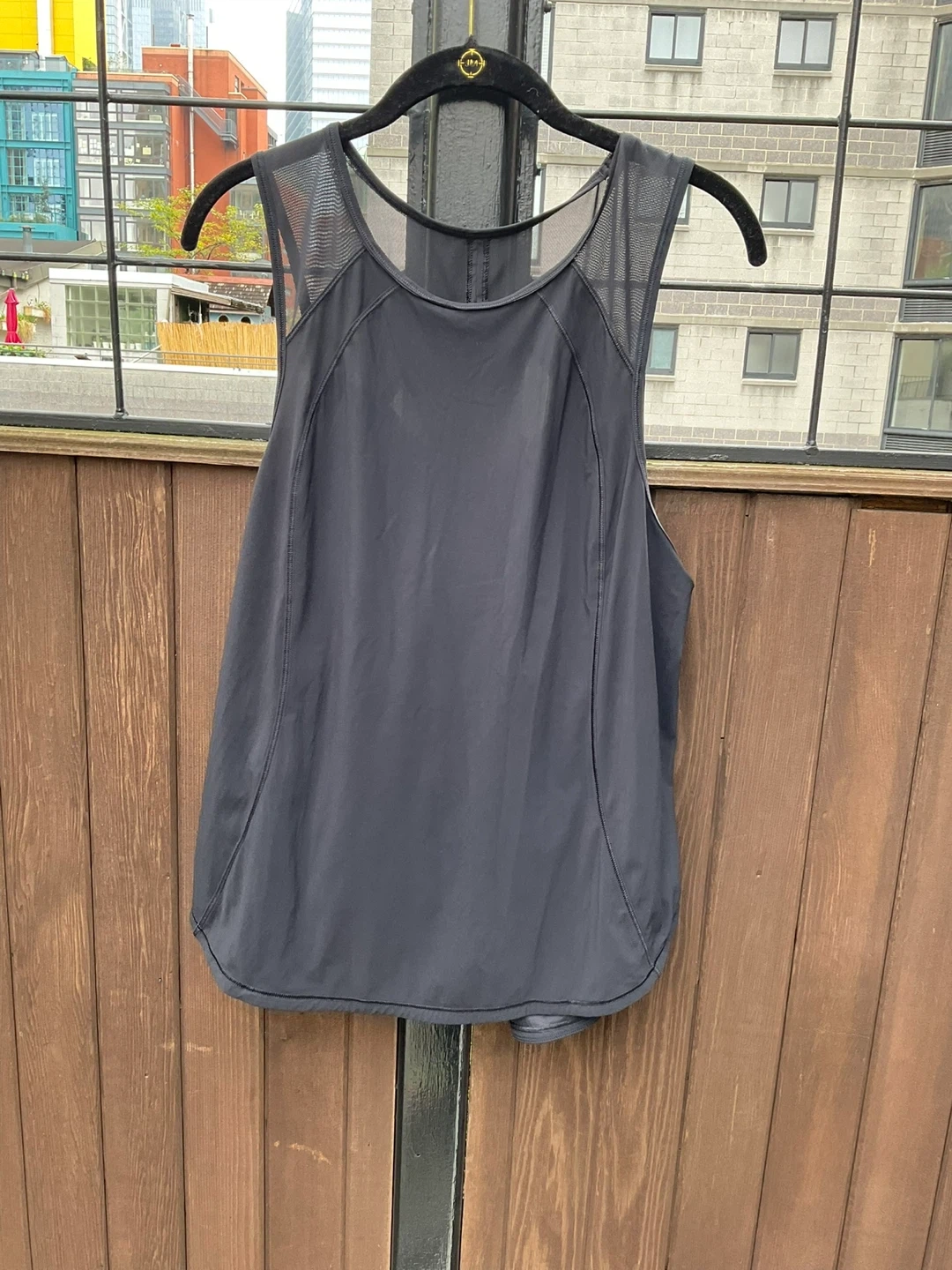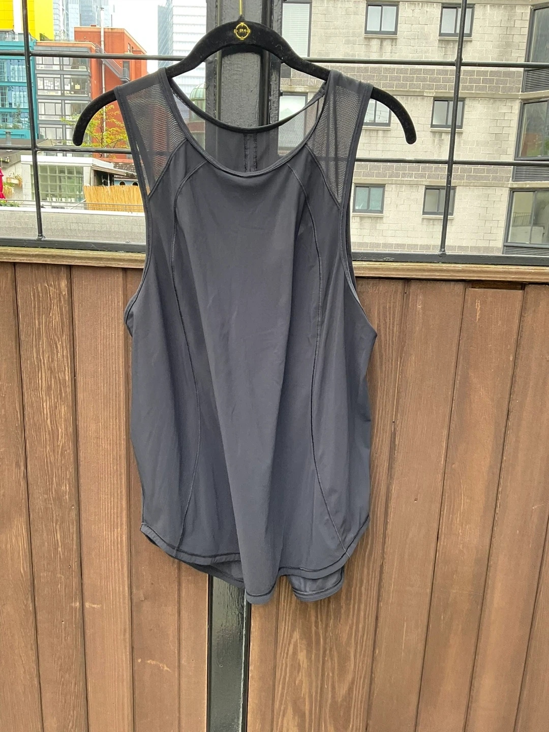Selling a Lululemon workout tank top. A cute gray tank top from Lululemon! It's in good condition and ready for a new home. Perfect for workouts or casual wear condition and ready for your next workout! The top features a stylish design with mesh detailing and a comfortable fit. Perfect for running, yoga, or any fitness activity