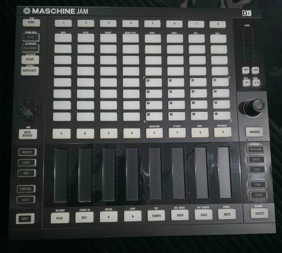 The Native Instruments MASCHINE JAM streamlines the electronic music creation process with an interface that allows seamless transition from idea to reality. On the hardware front, production and sequencing is lightning fast with an 8x8 multicolor click pad capable of playing chords and melodies along with eight dynamic LED guided strips for minute sound shaping. Able to import your favorite sounds and samples, the JAM also comes with a full complement of preloaded MASCHINE software so you can hit the ground running.
