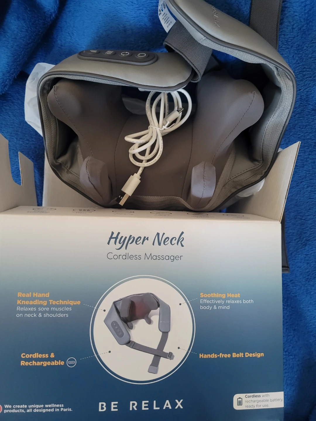 This Be Relax Hyper Neck Massager offers real hand kneading technique to relax sore muscles on your neck and shoulders.