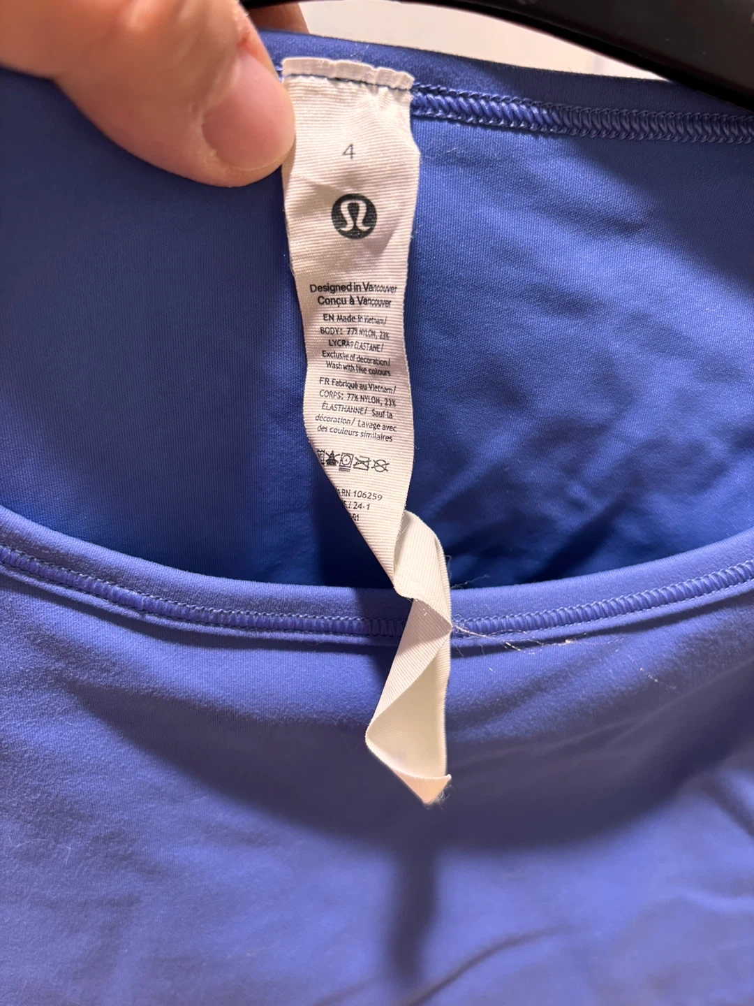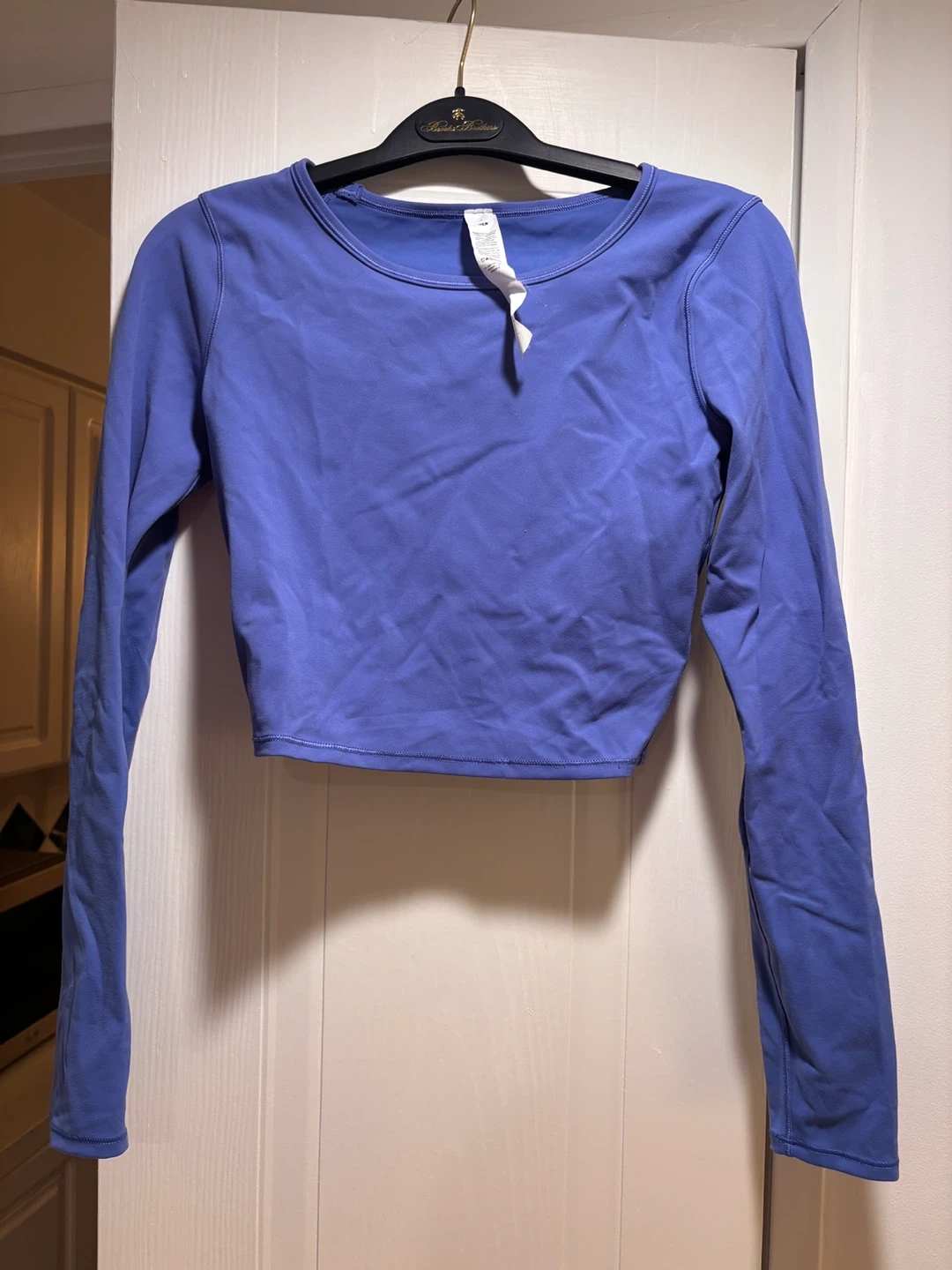 Lululemon long sleeve cropped top in a size 4. Designed in Vancouver and made with Nylon and Elastane. Perfect for a workout or athleisure wear!