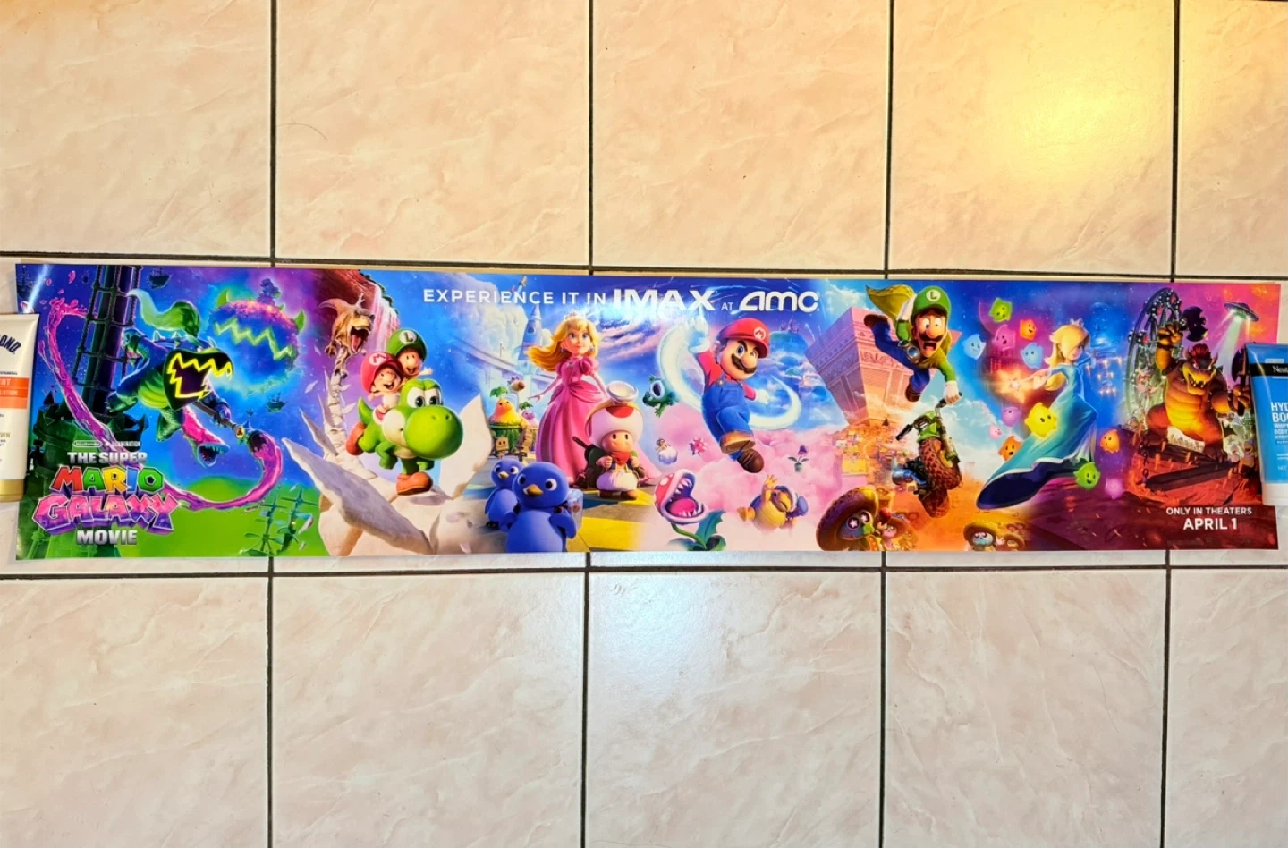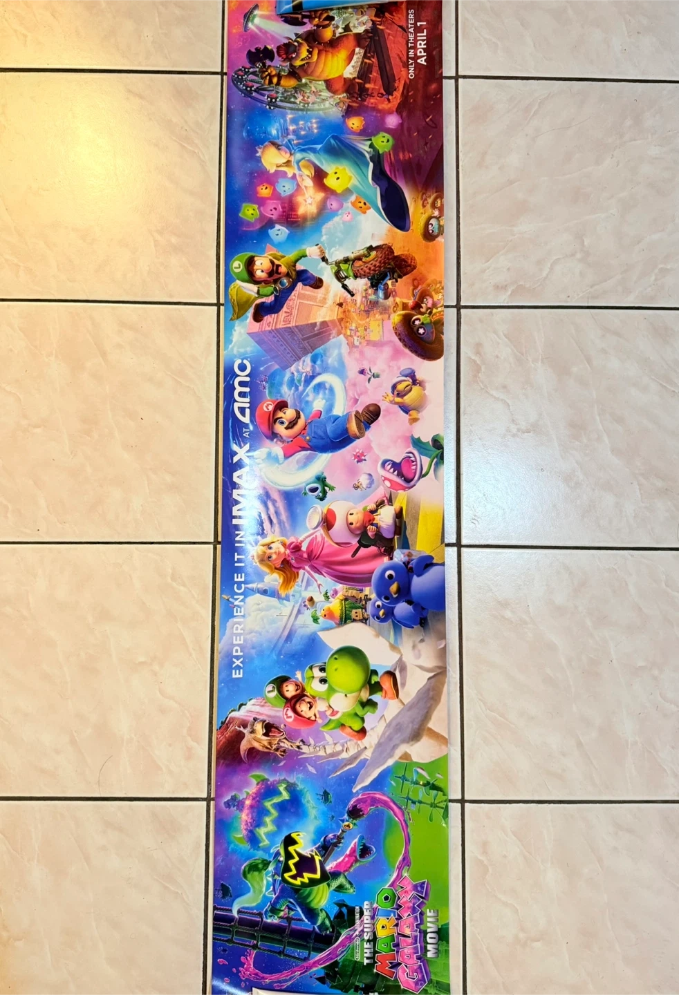This is a AMC IMAX LIMITED edition 54” x 12” poster featuring the beloved main characters in a colorful & vibrant galaxy-themed design. Nintendo’s new Super Mario Galaxy Movie was just released on April 1st, 2026.