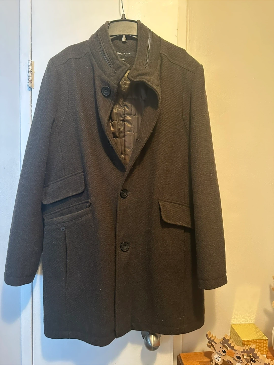 Selling a Kenneth Cole New York wool blend coat in size medium. It's a stylish and warm coat, perfect for the colder weather! The coat is in great condition and ready for a new owner.