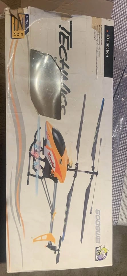 I don’t know much about this helicopter. There is damage to the landing skid, as shown in the picture. It will need new batteries and some repairs. It's most likely best for parts if you have the same make. Sold as is. Not tested, so no returns.