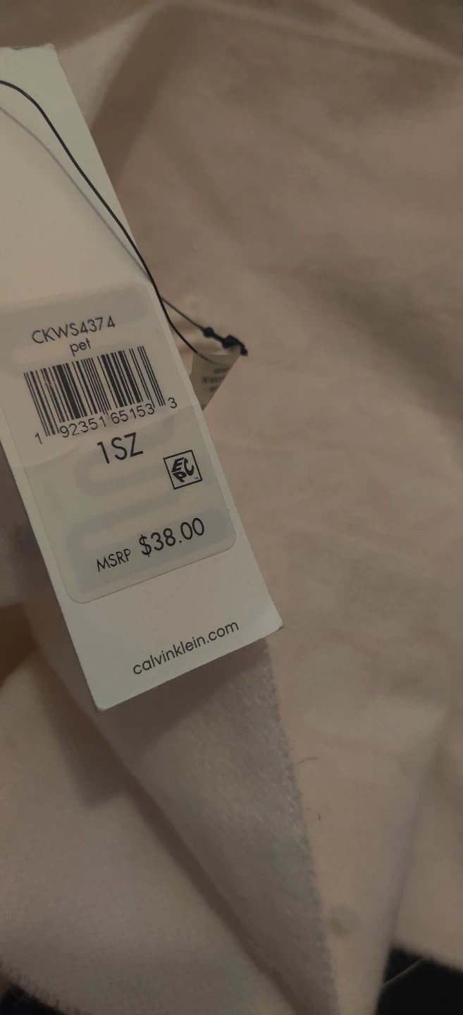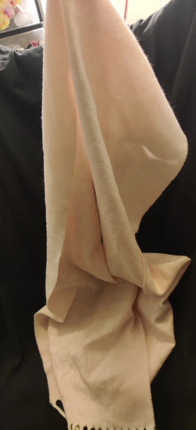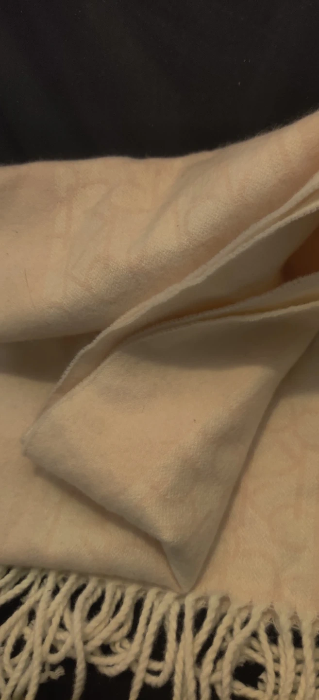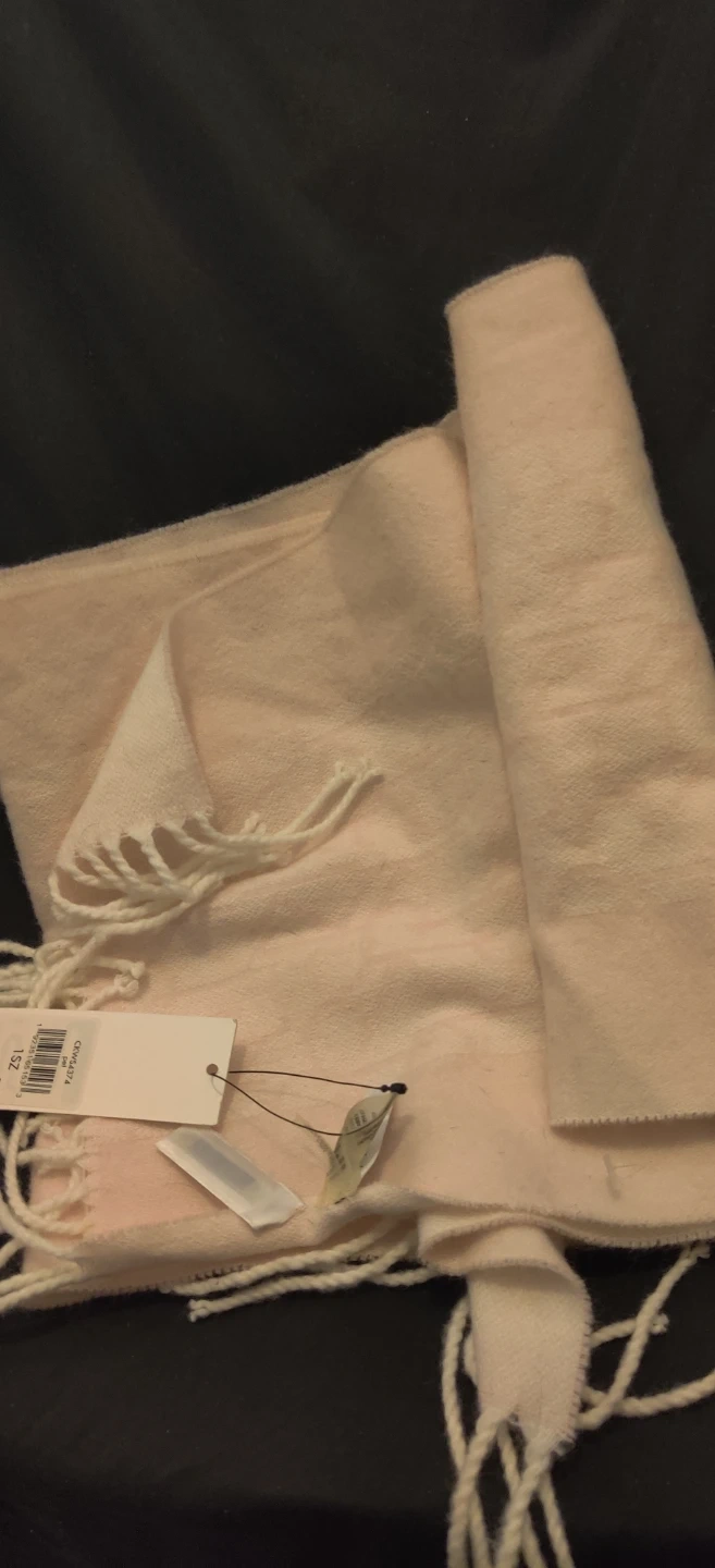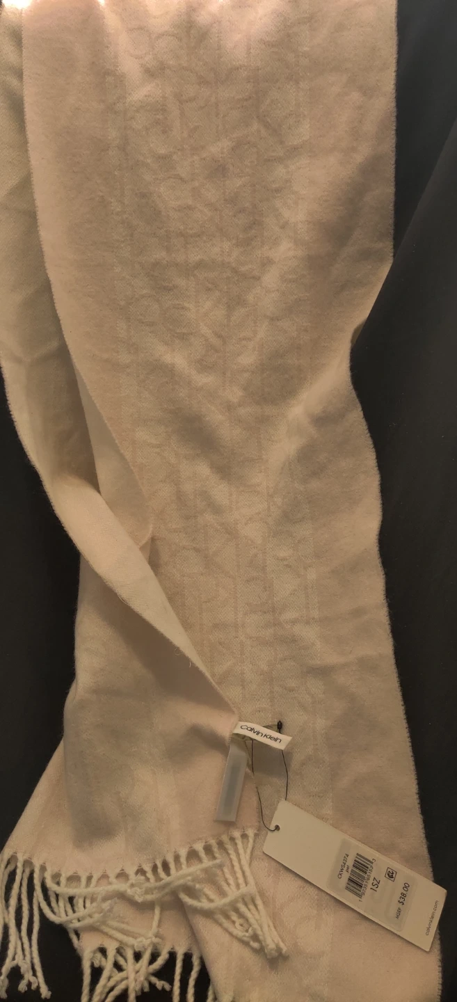 This is a Calvin Klein scarf in a soft pink colour. It has a fringe detail on the ends. It's one size and perfect for cooler weather!