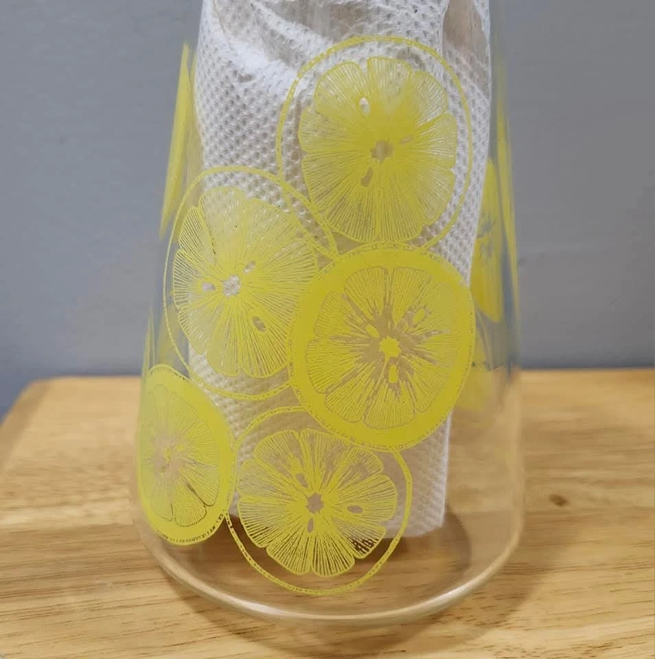 ~ MCM Glass pitcher with lemon slice pattern is made by Pyrex in 1970s.