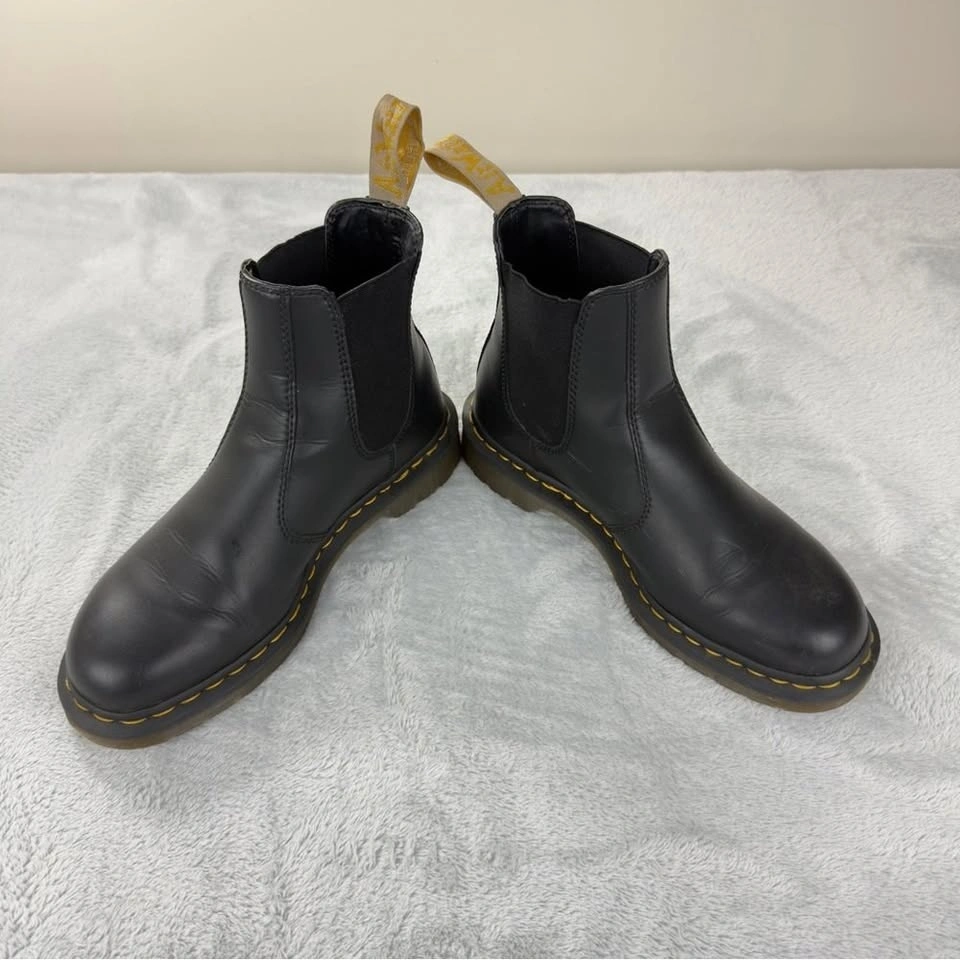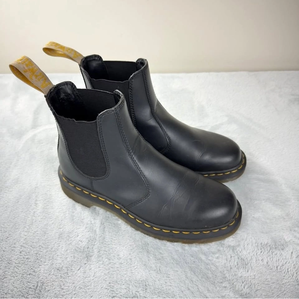 Dr. Martens Women's 2976 Felix Chelsea Boots in vegan black leather. Size 9 US Women's / 7 UK. Boot height is 7". In good pre-owned condition, as shown in photos. No flaws noted.