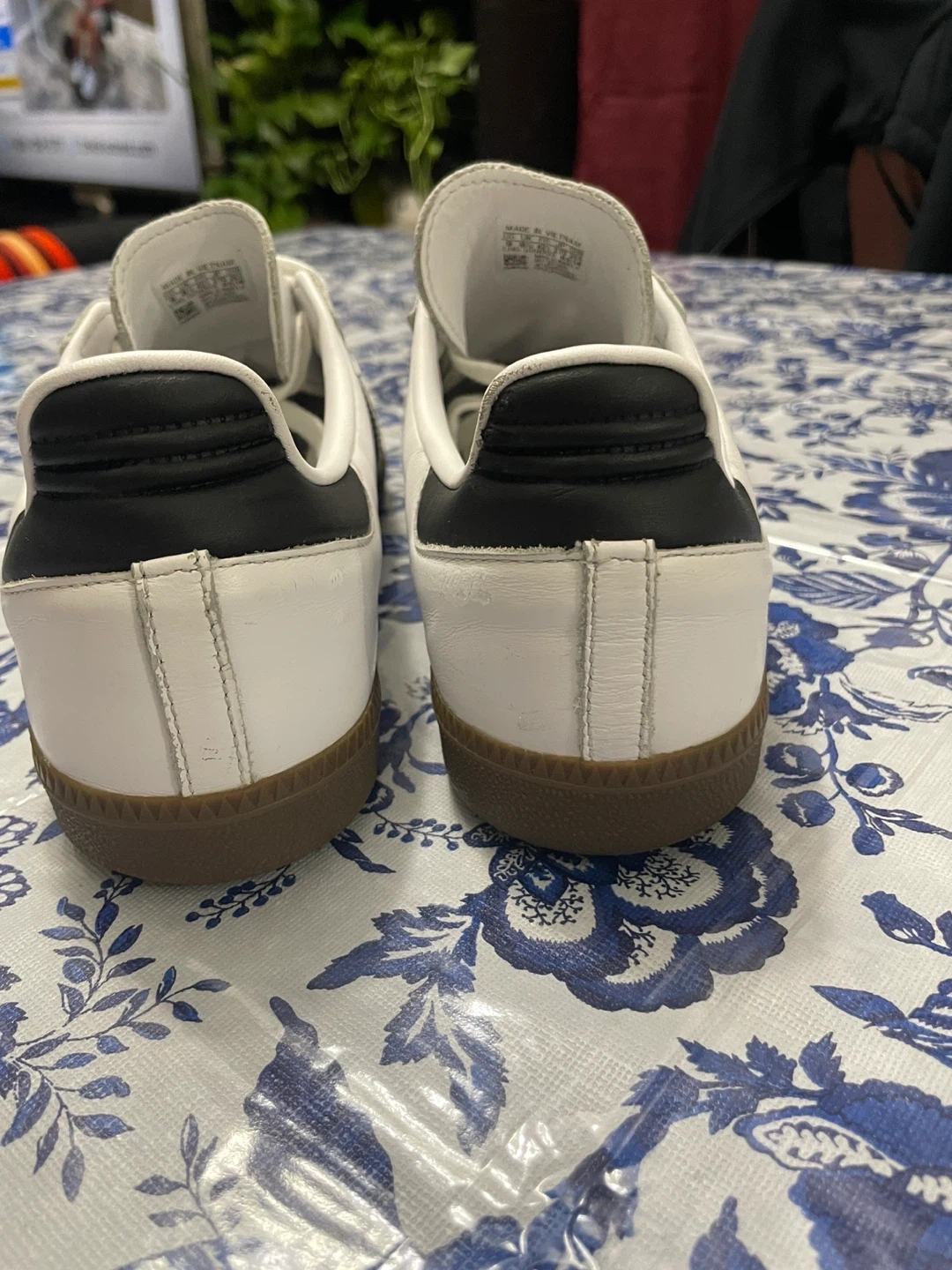 Selling a pair of Adidas Samba Classic sneakers in white and black. These are a stylish and comfortable choice for everyday wear. They feature the classic Adidas three-stripe design. Great for adding a sporty touch to your outfit!