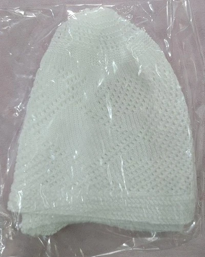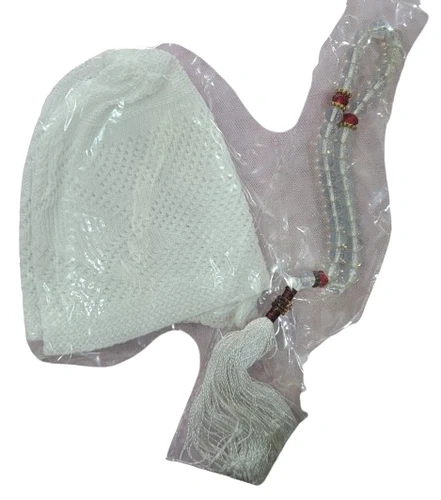 Traditional Prayer Set, White Knitted Cap with Beads Tassel, Isl