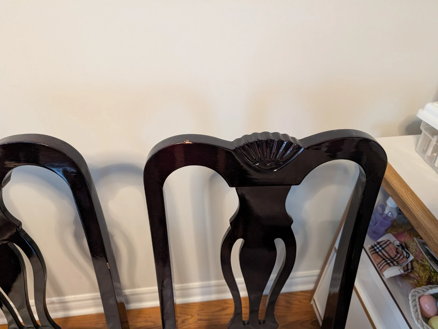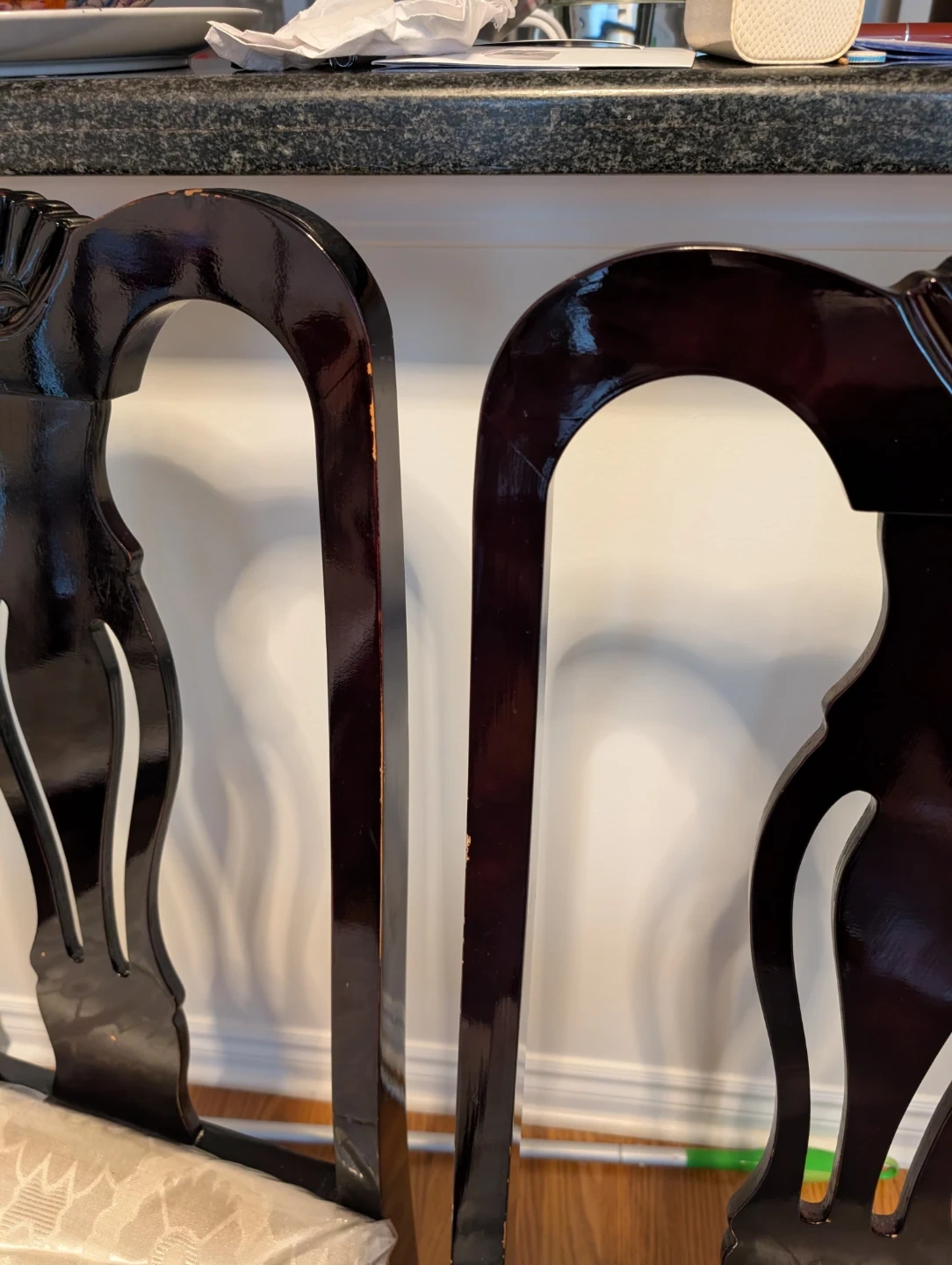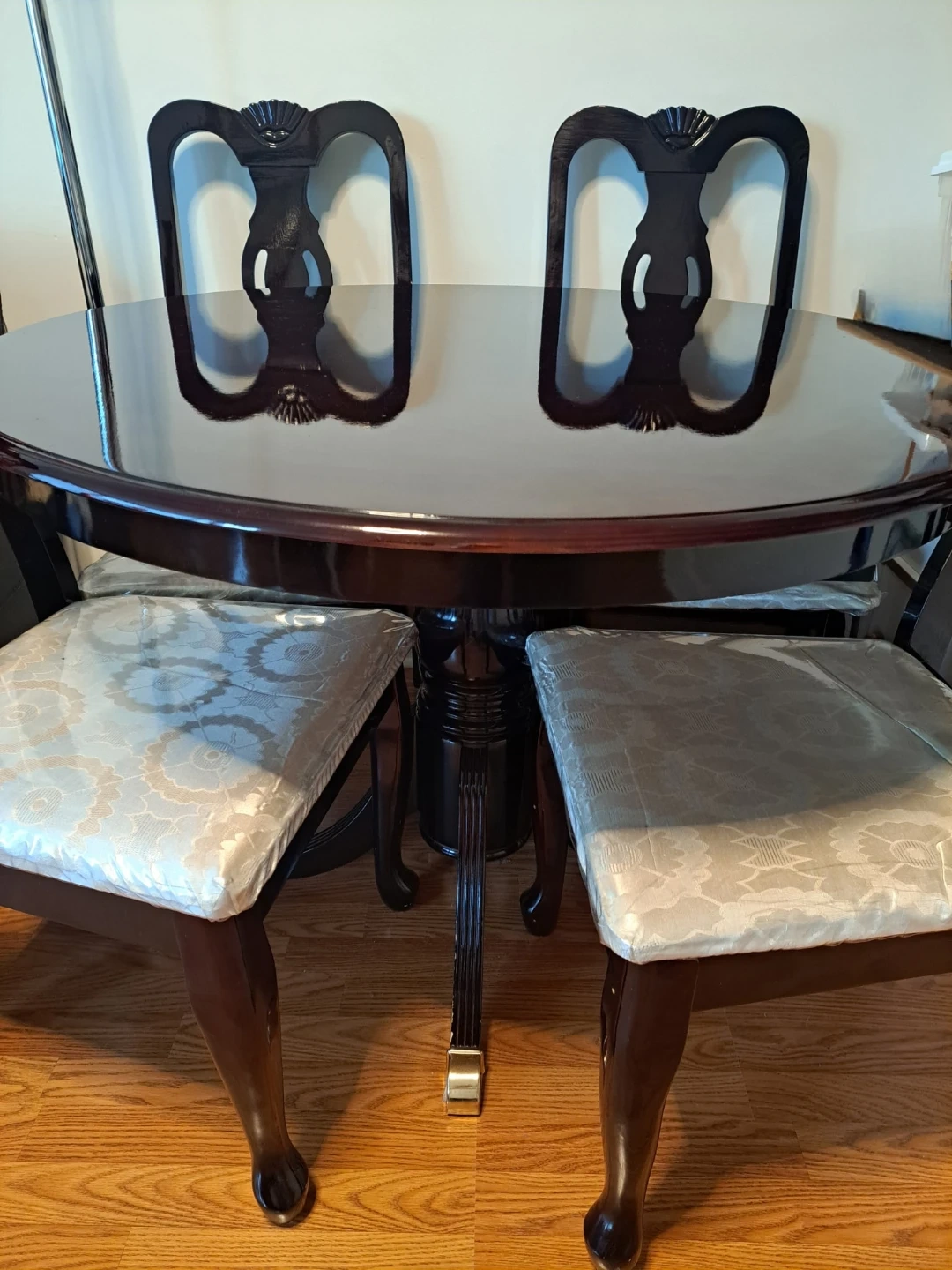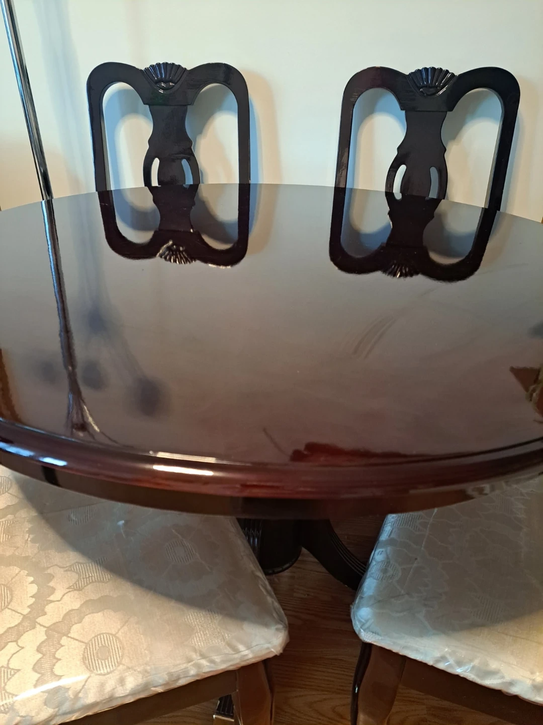 Wooden table and chairs, no scratches.