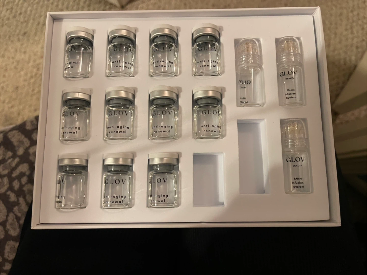 This GLOV BEAUTY Microneedle Infusion Anti-Aging Solution comes with 11 vials and 3 application tools. It's designed for anti-aging renewal. Great for targeting fine lines and improving skin texture!