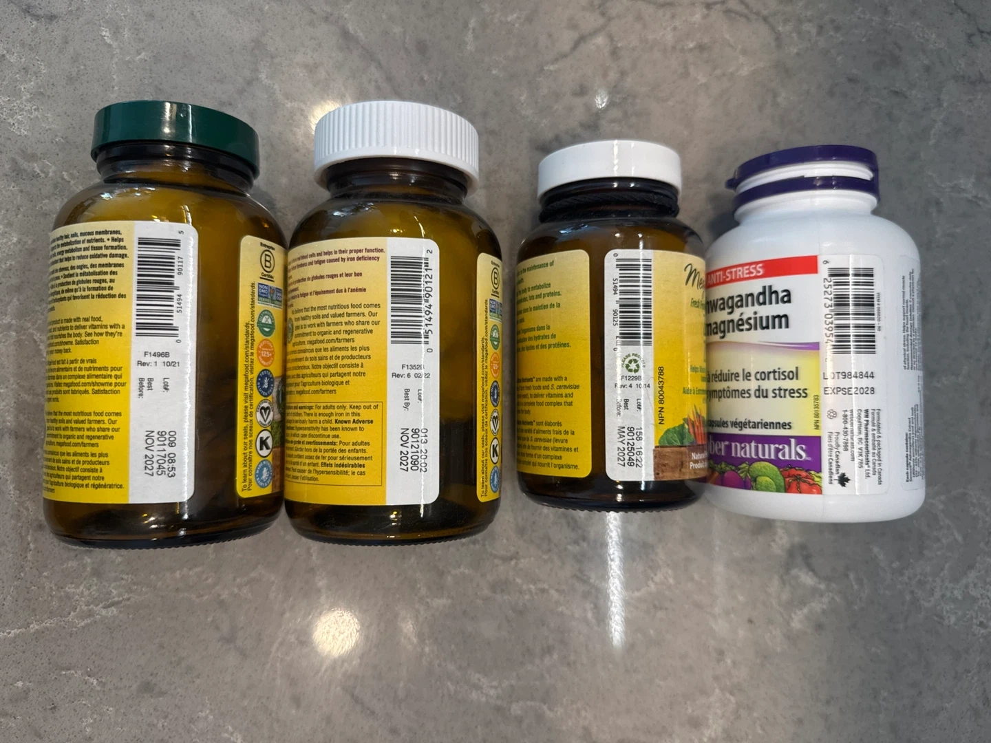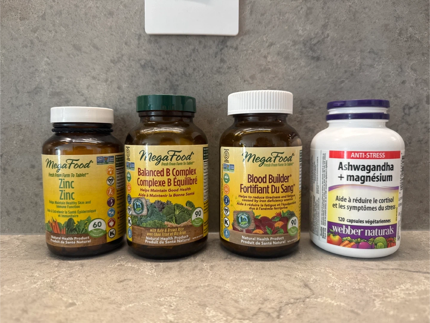 Includes MegaFood Zinc, MegaFood Balanced B Complex, MegaFood Blood Builder and Webber Naturals Ashwagandha + Magnesium.