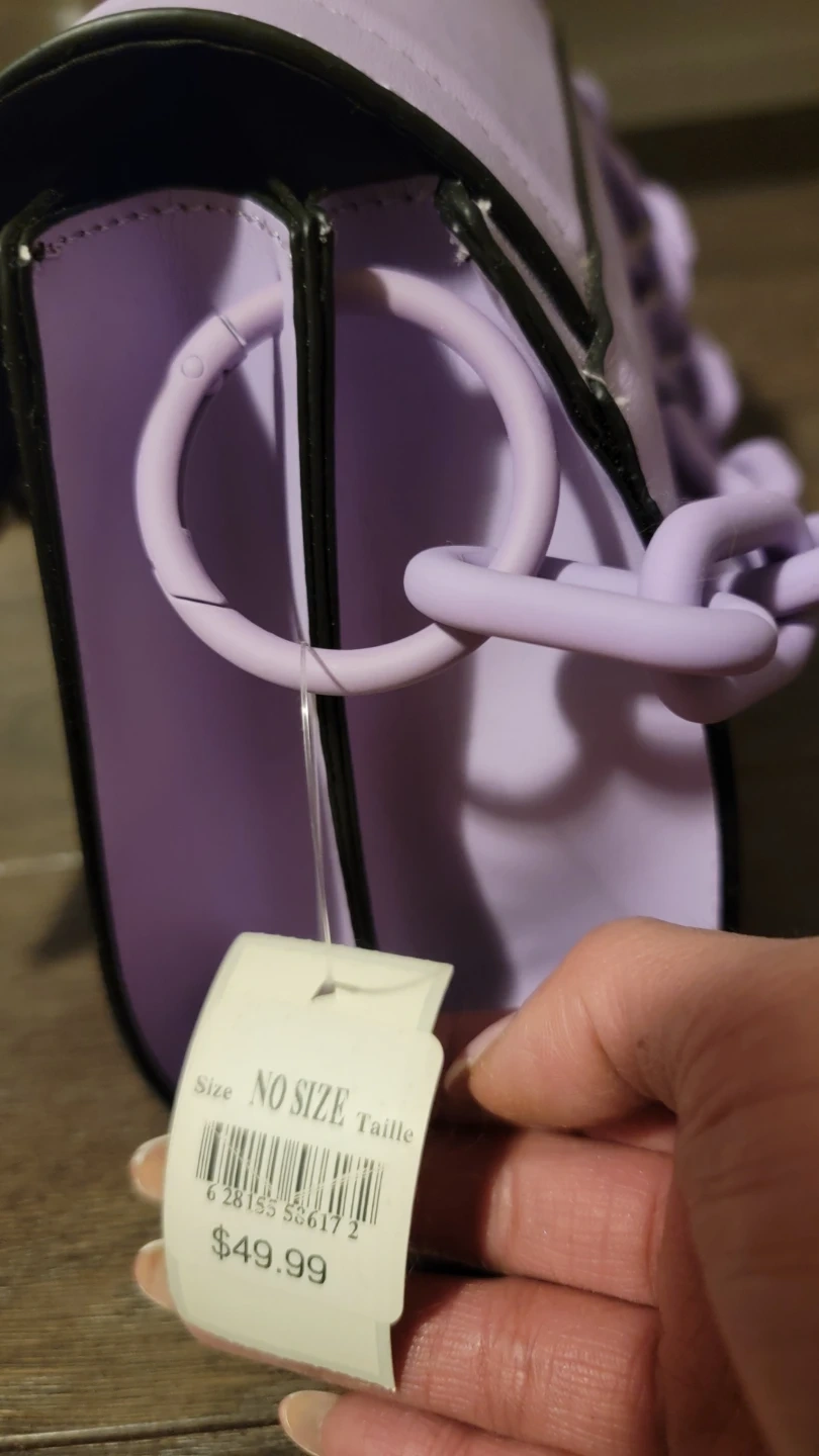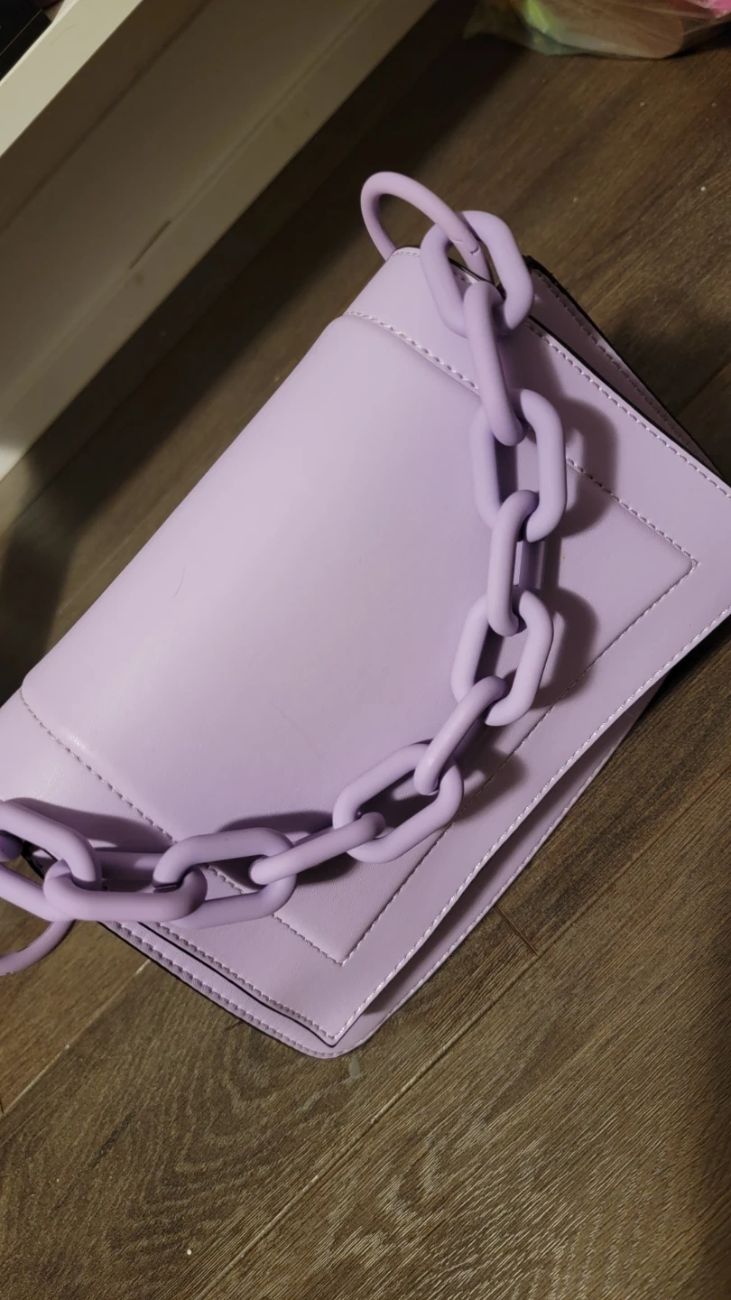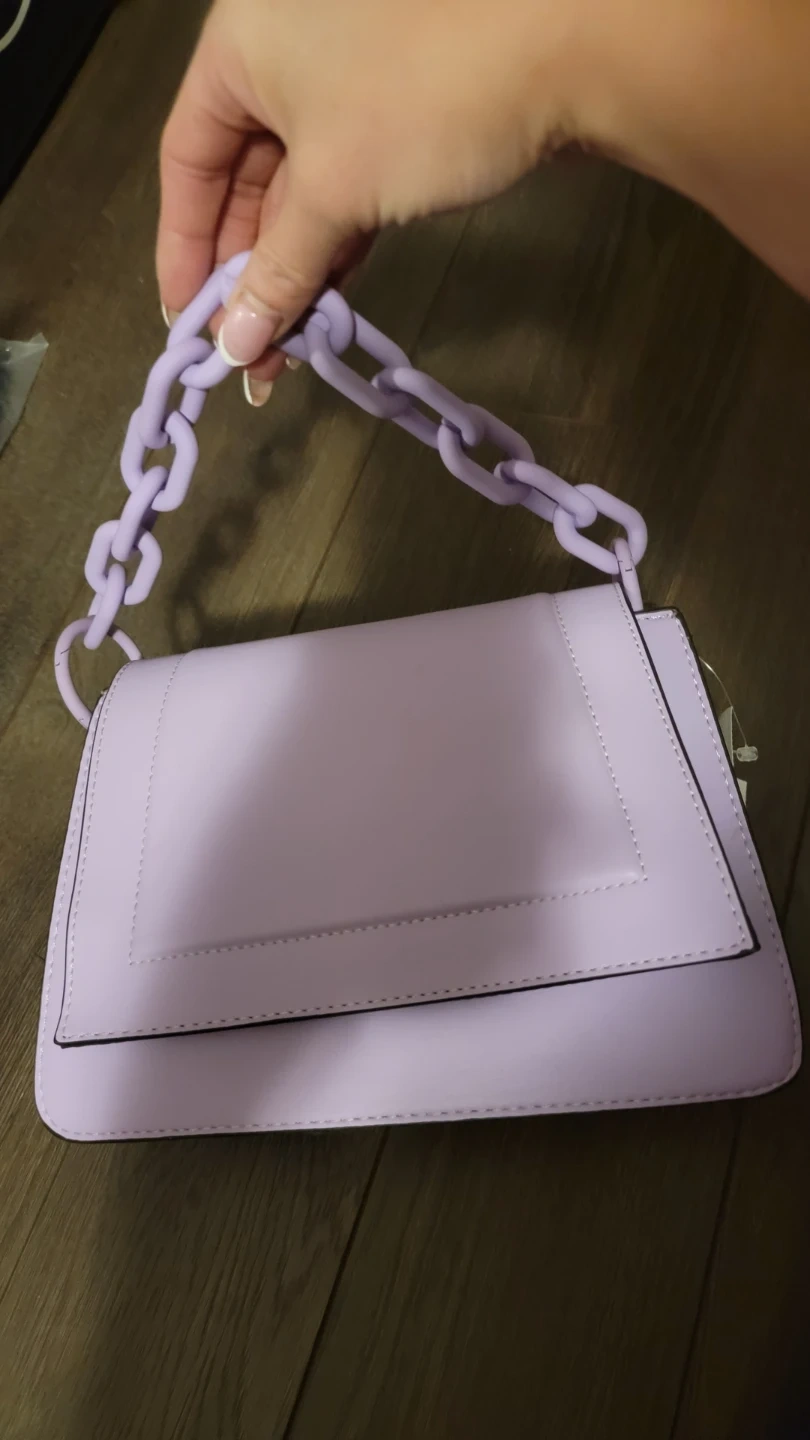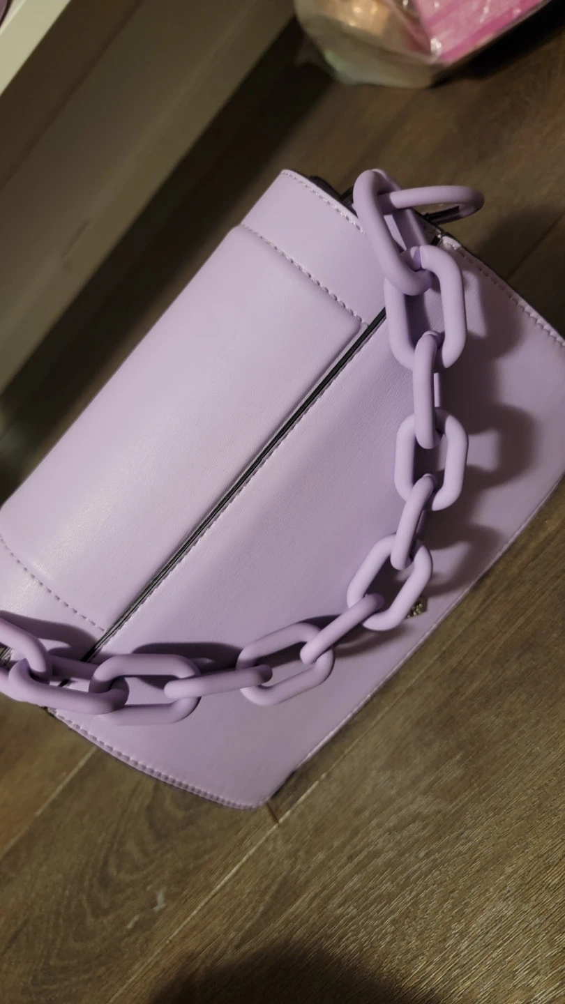 A stylish shoulder bag in a lovely lavender/lilac hue. It features a bold, chunky chain strap for a modern look. Purchased from Call It Spring for $56.50. Brand new with tag