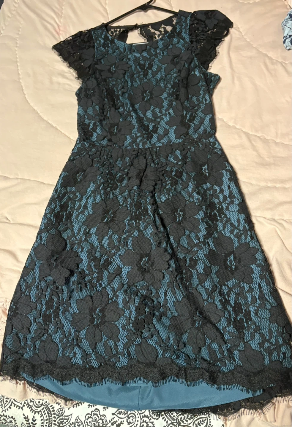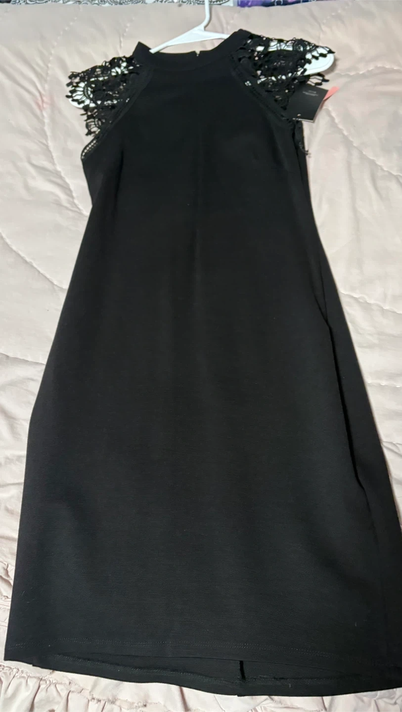 This is a5 black bandage dresses. It features a V-neckline and a knee-length hem. Made from a stretchy material for a snug fit.