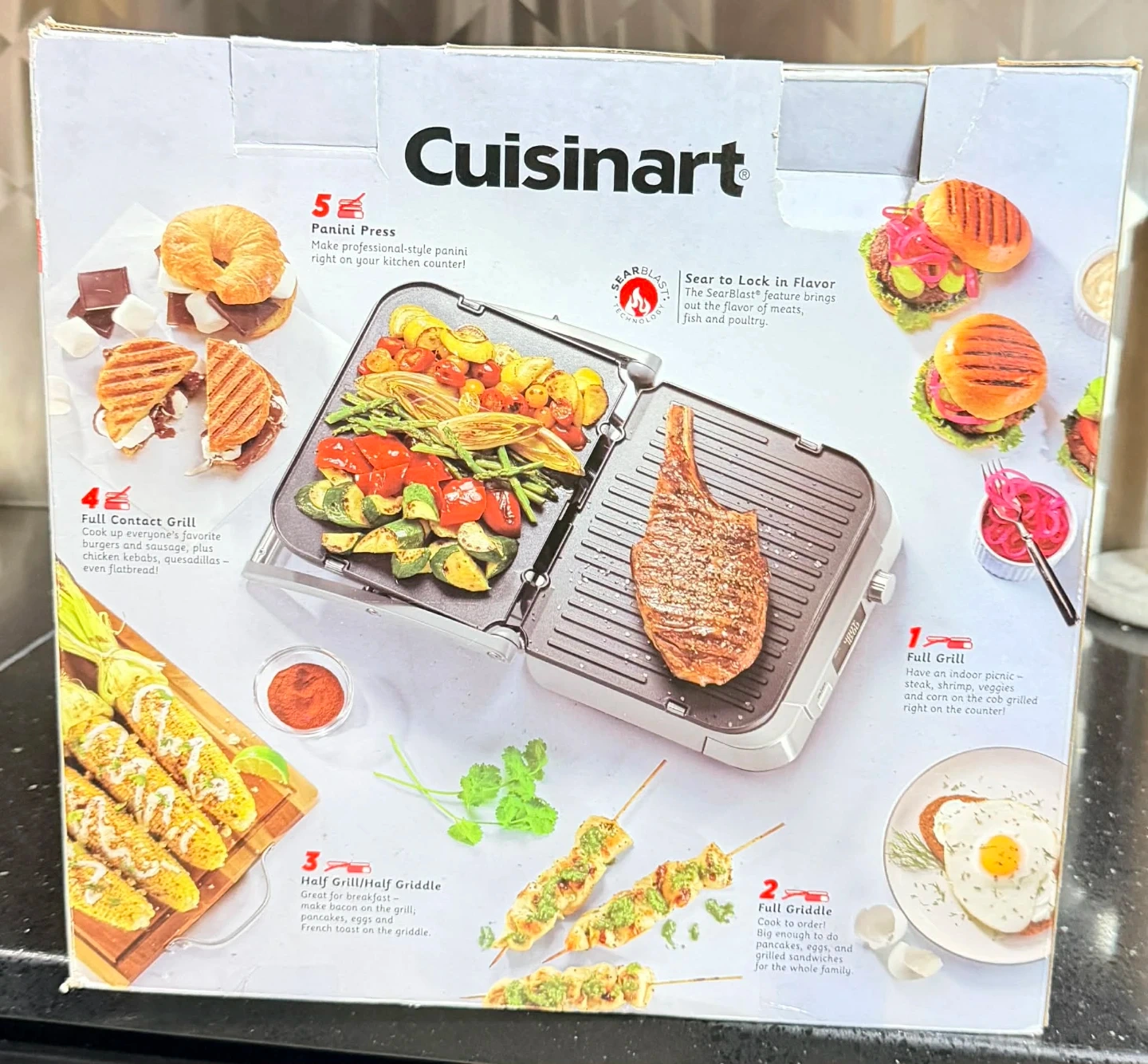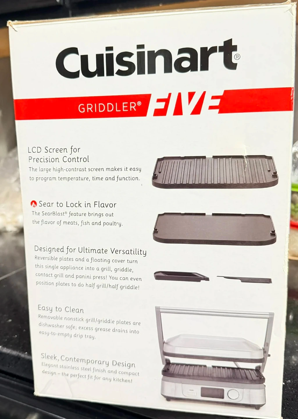 This Cuisinart Griddler Five offers 5 ways to cook: full grill, full griddle, half grill/half griddle, contact grill, and panini press. It features reversible nonstick plates that are dishwasher safe. Sear to Lock in Flavor technology brings out the flavor of meats, fish, and poultry. Used a couple of times. Like new $50