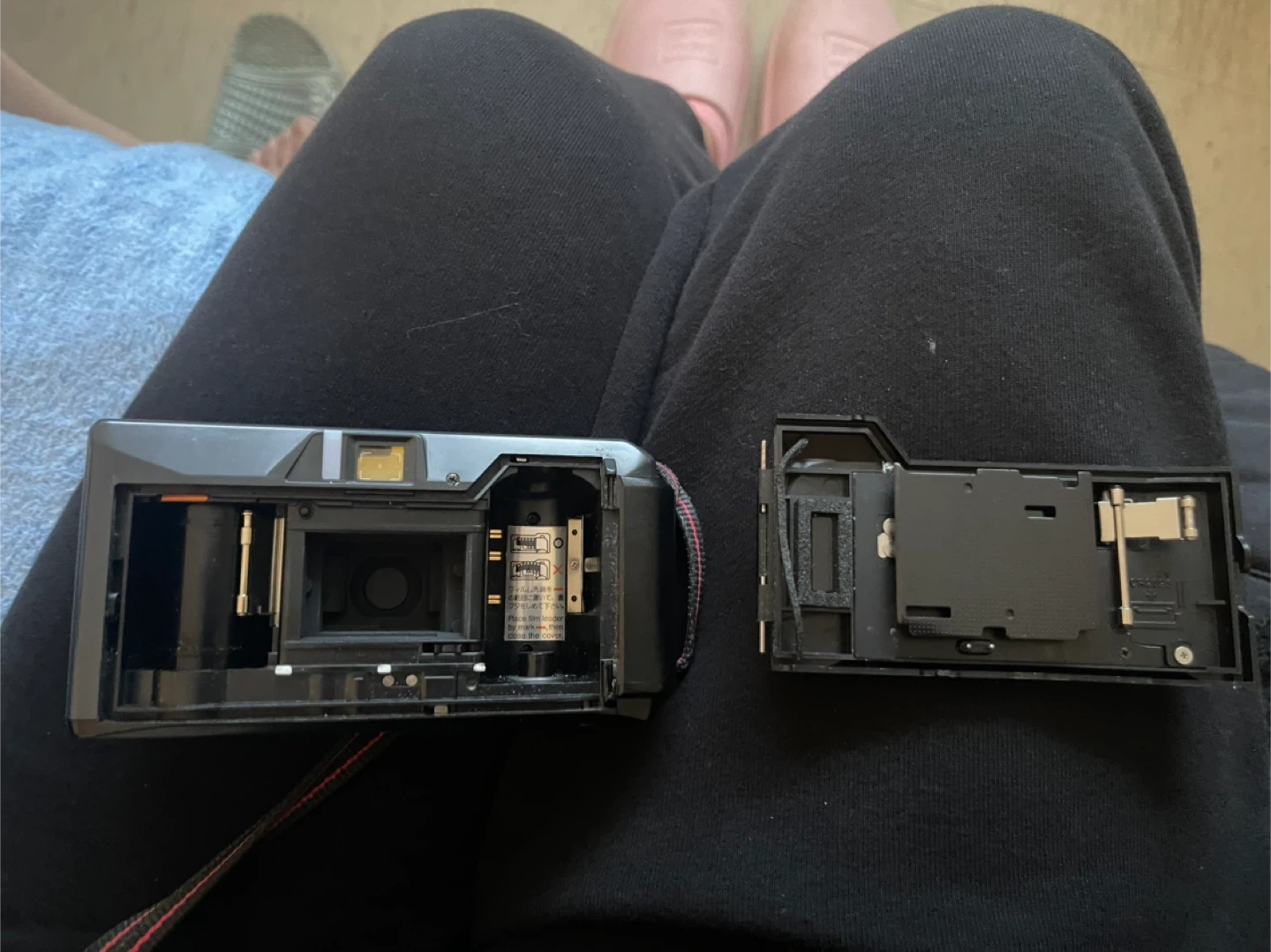 This is a Yashica film camera. It comes with a black and red Yashica leather case. Selling as is. The back case came off entirely (not sure if you can repair or replace it somehow). The battery lid is a bit chipped. Hanging on by one last piece (check photos). Don’t have any film to test it out. Someone brought batteries to test and it turns on. Maybe you can use for parts or for your collection. Pick up Dundas and Spadina intersection.