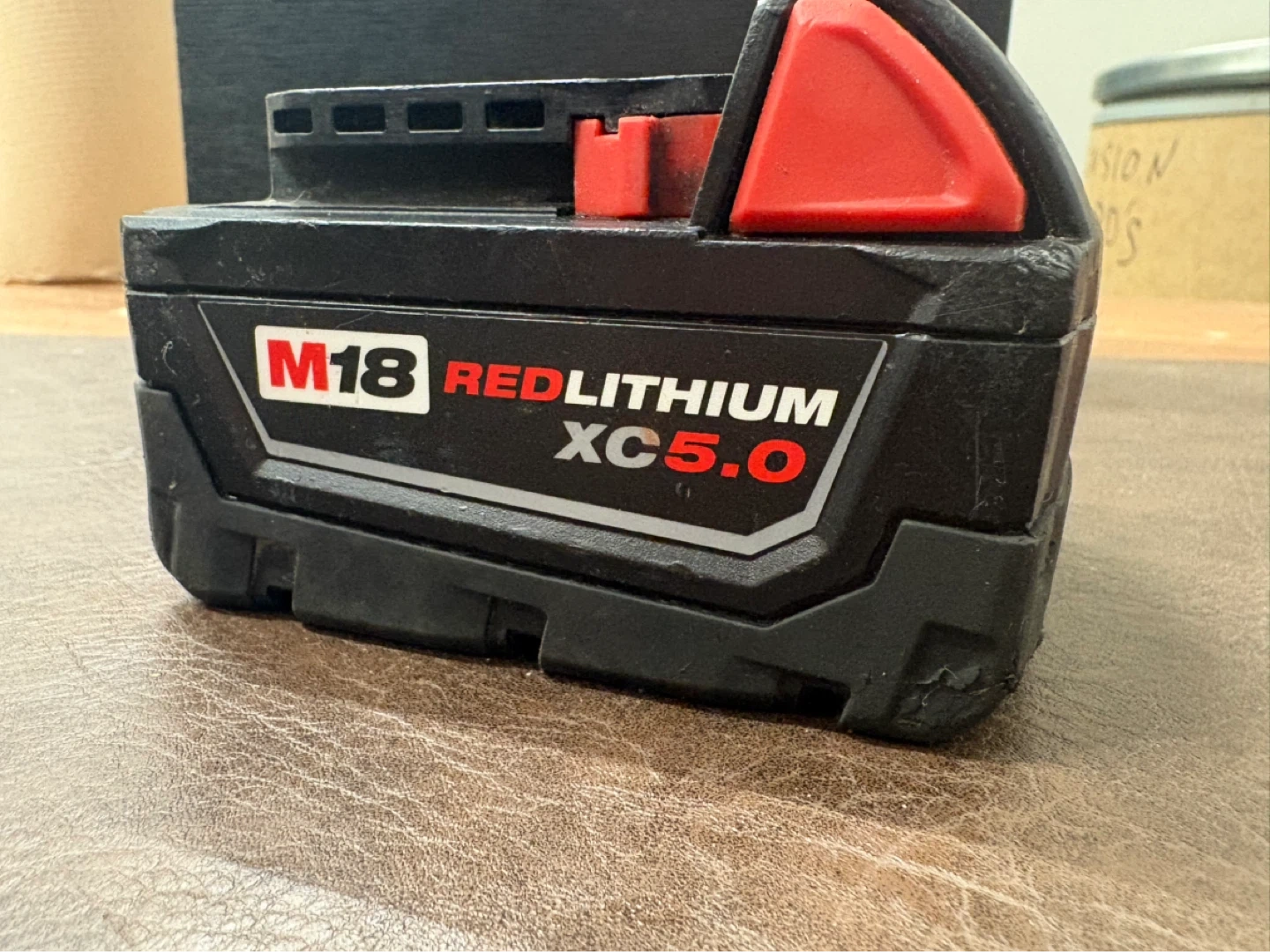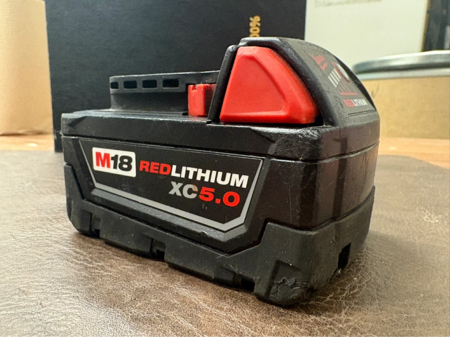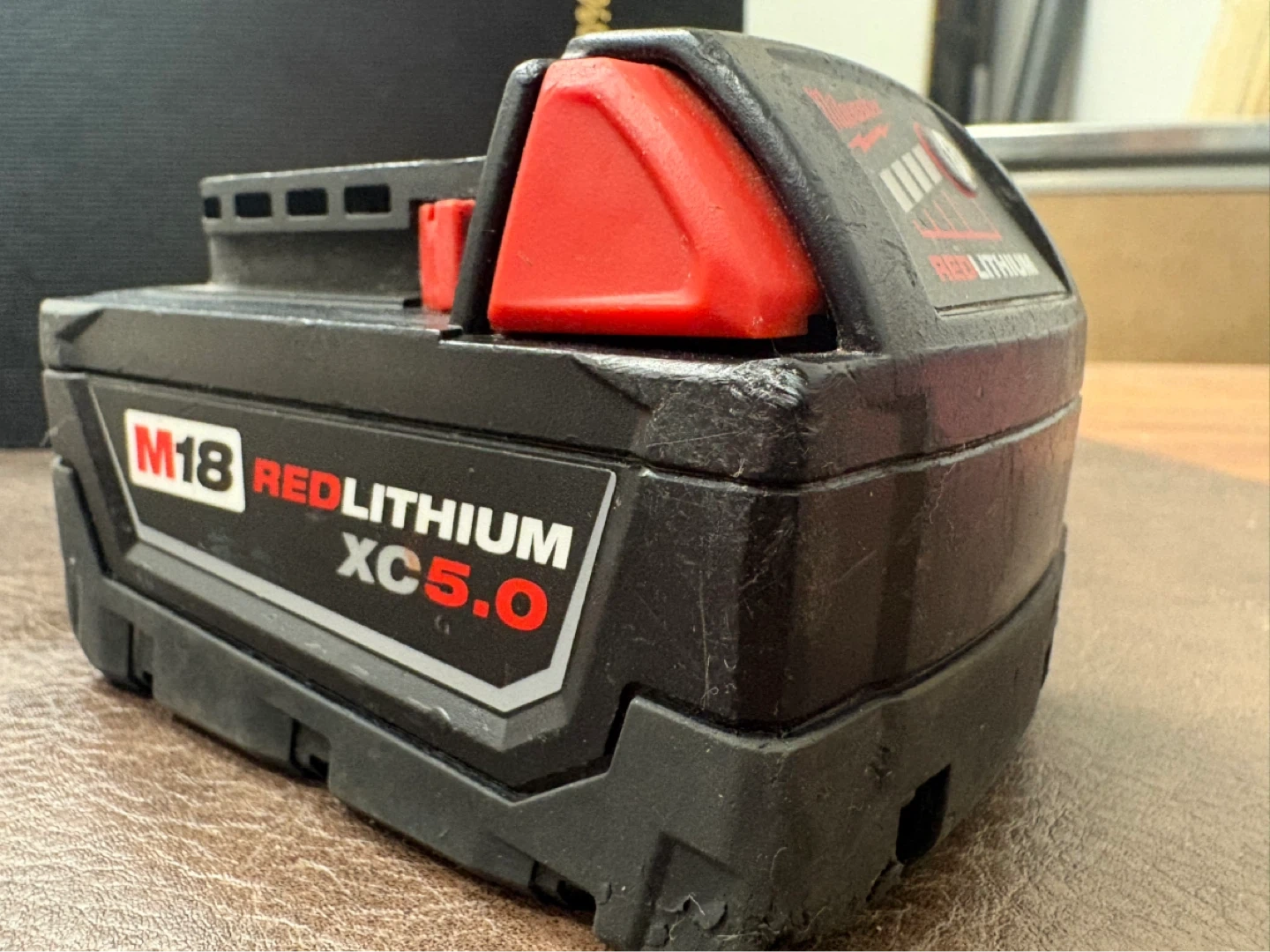 Milwaukee M18 RedLithium XC5.0 battery. 5.0 Ah capacity. Works with M18 tools. This battery is designed for long runtimes.