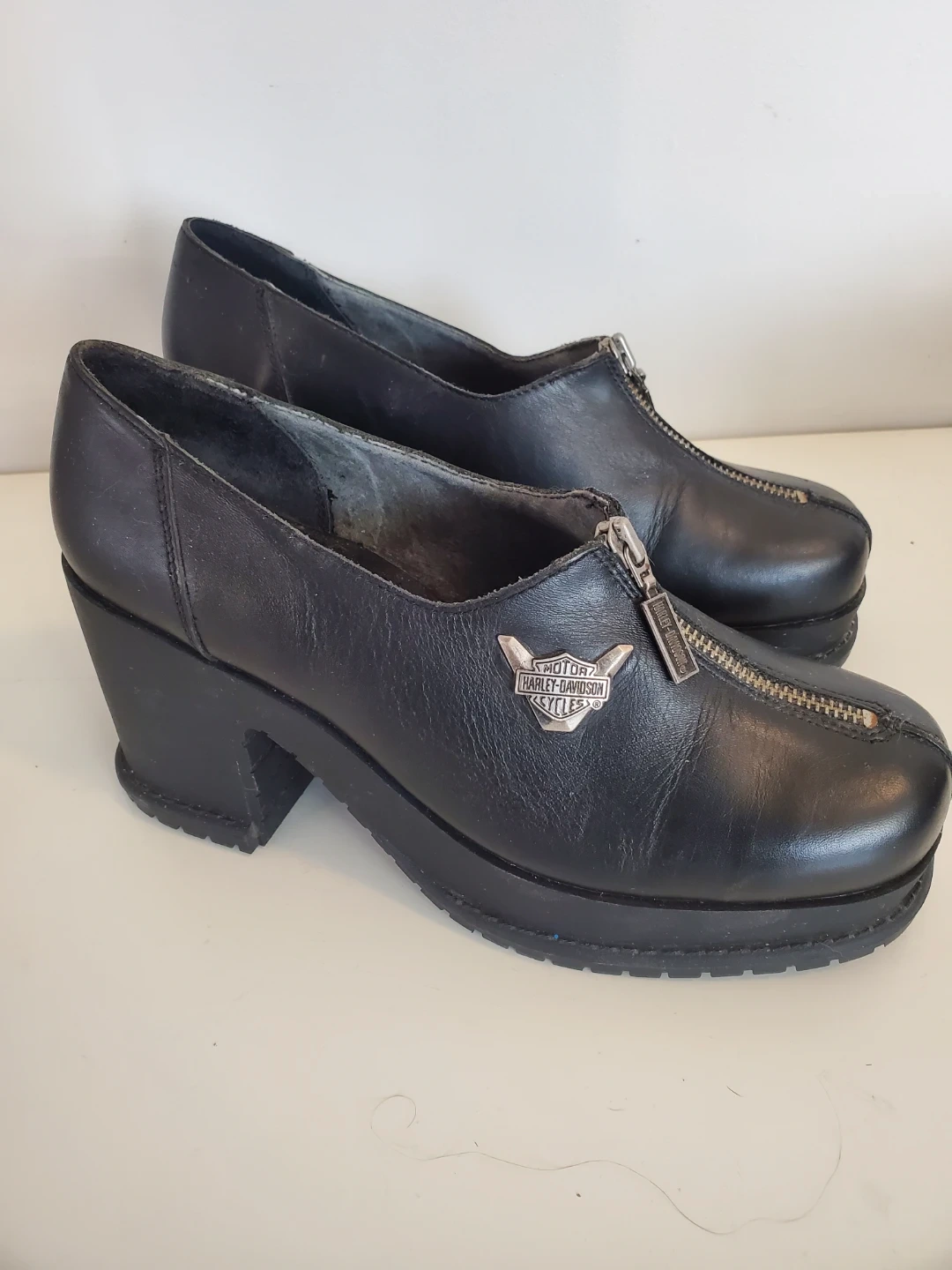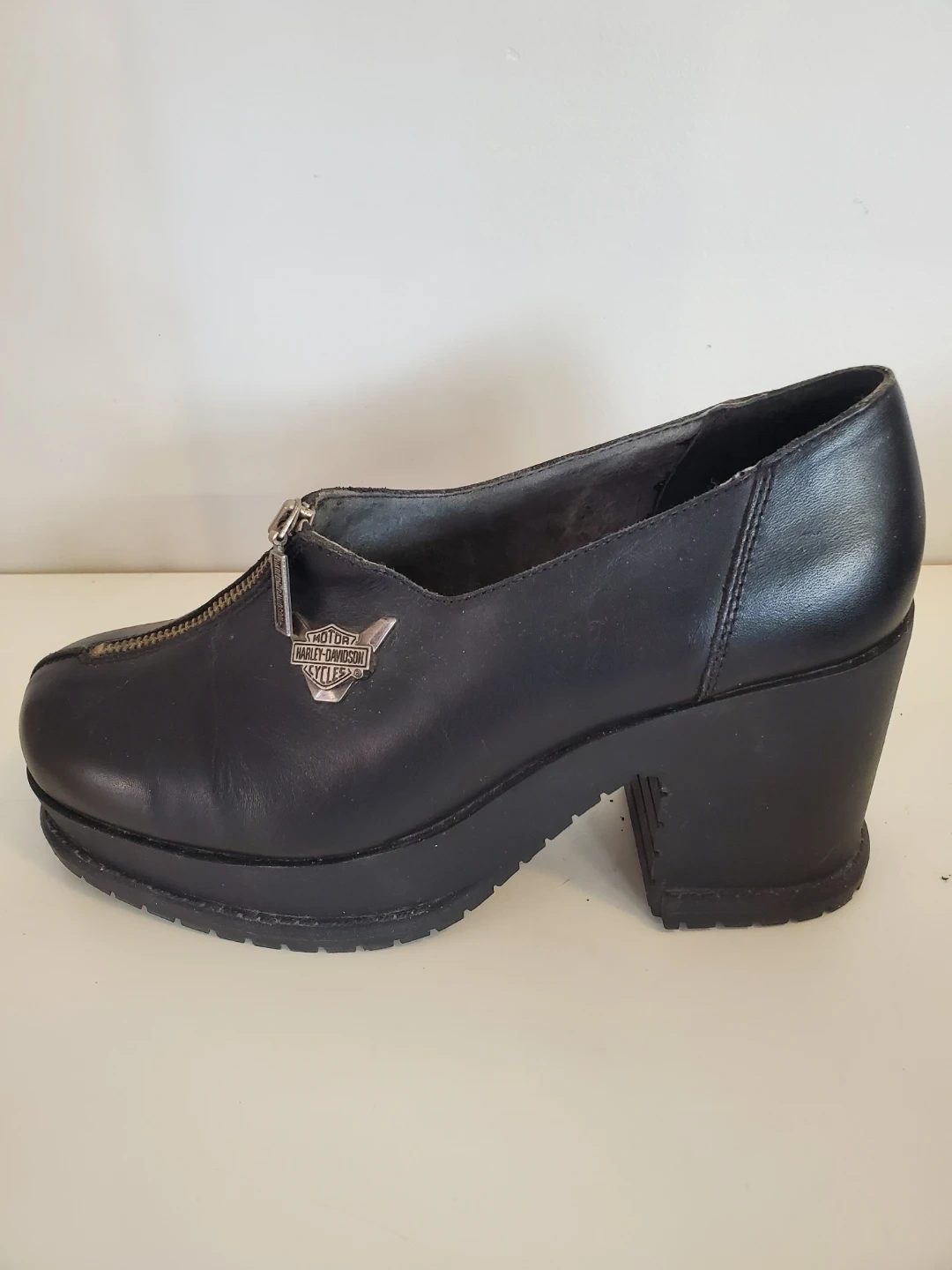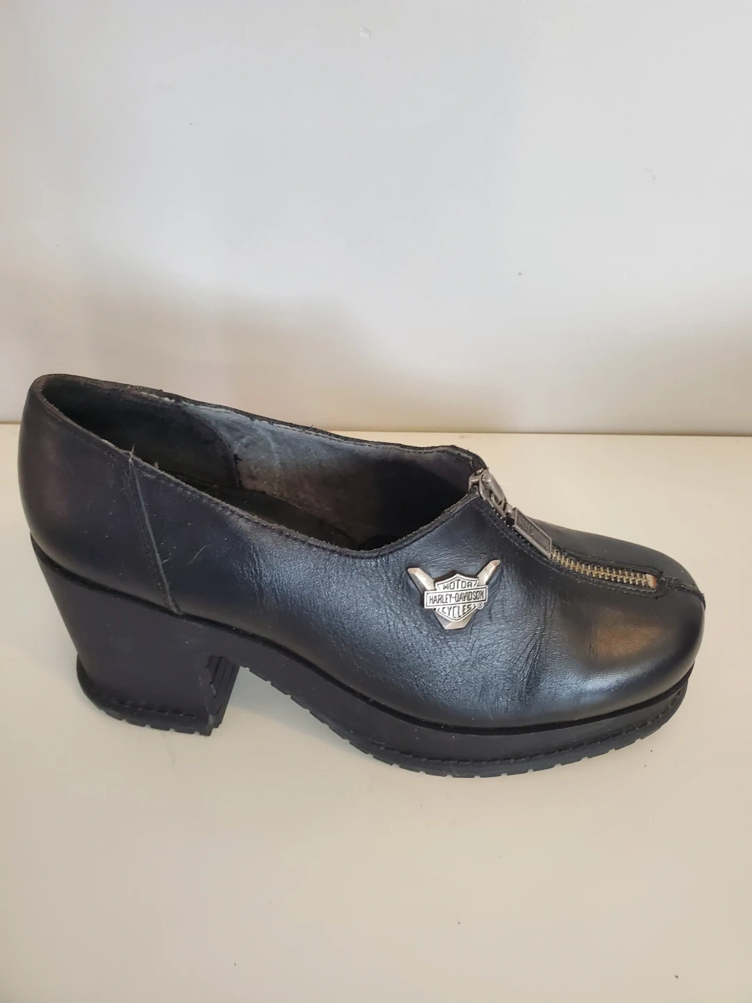 Harley-Davidson Women's Black Leather Zipper Shoes Size 9