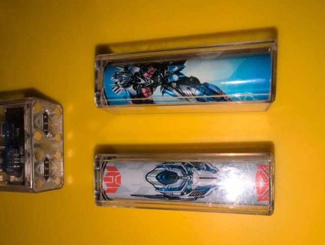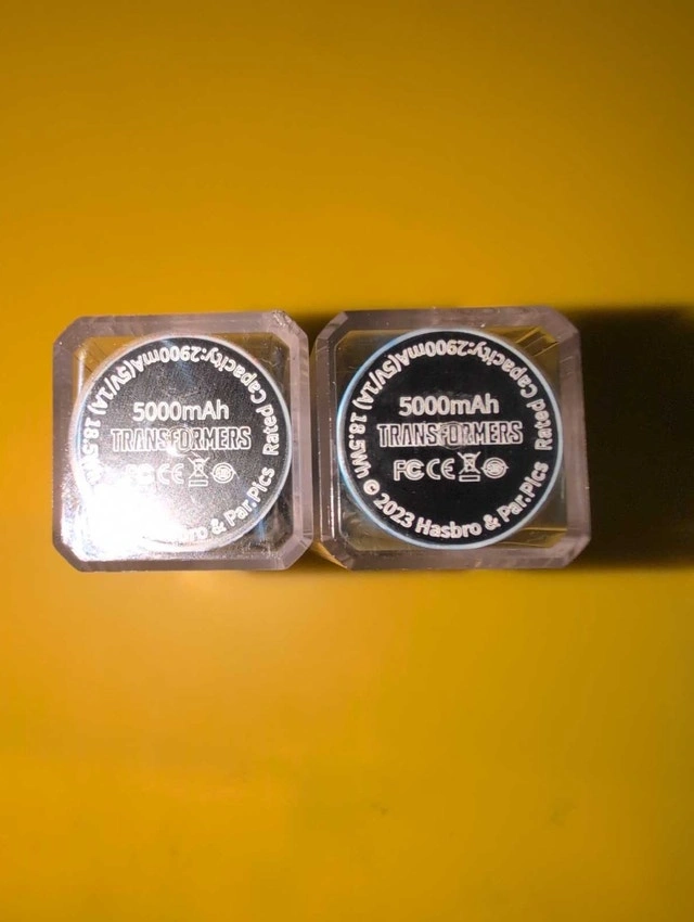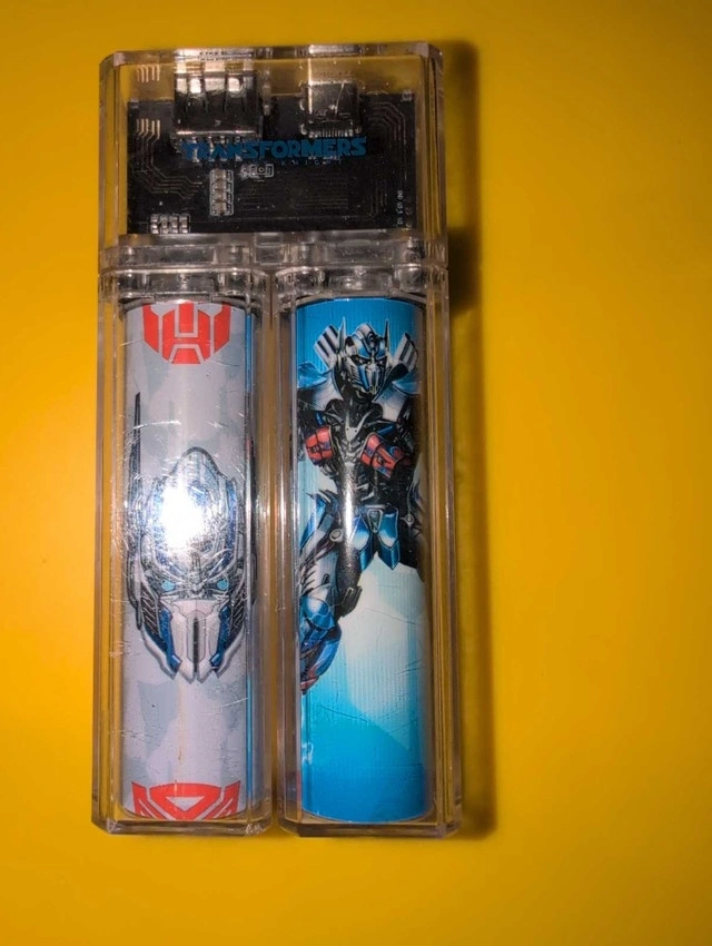 Charge up your devices with this pre-owned Transformers power bank! It features Optimus Prime and the Autobot logo. Despite being used, it's ready to provide power on the go. It can power all sorts of devices through USB, and the specs are listed on the case itself. If the ad is still up, the power bank is ready to transform your charging experience!