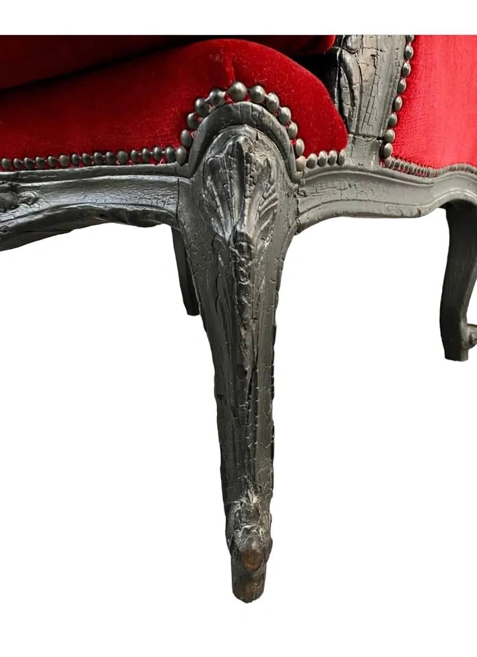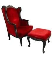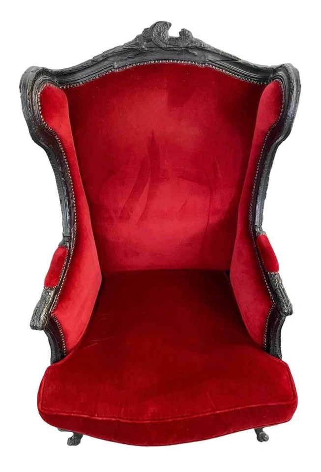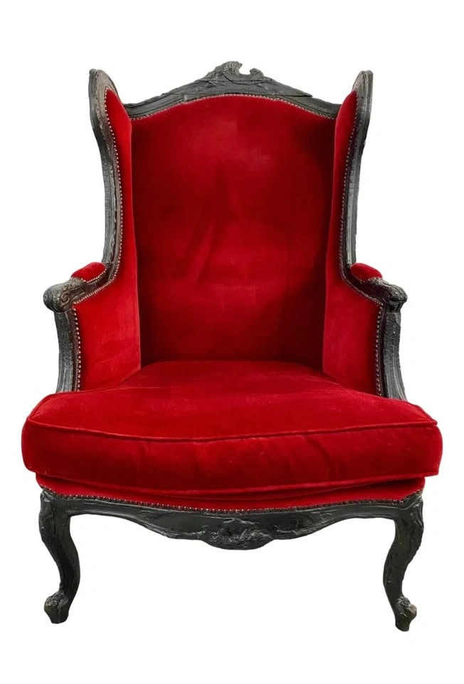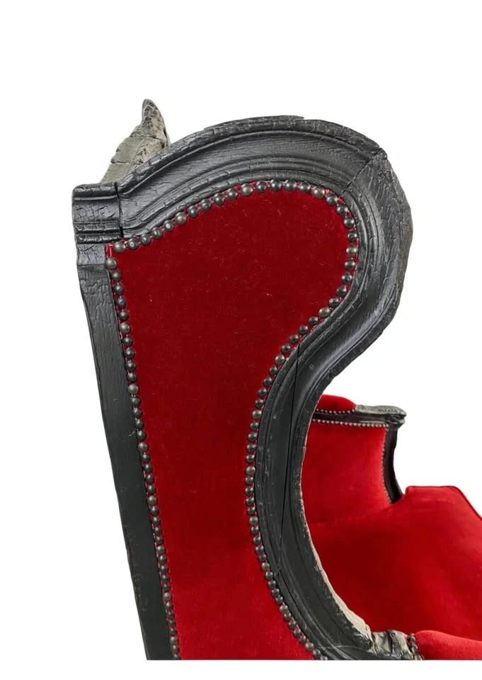 10Maarten Baas for Gramercy Park Hotel Smoke Wingback Chair with Ottoman Luxe Velvet Designer. When artist Julian Schnabel redesigned the Gramercy Park Hotel for Hotelier Ian Schrager in 2006, studio Maarten Baas was commissioned to create custom furniture for the property, including 200 examples of the red velvet armchair in this listing. This item is from the "Smoke" collection created by Baas, so named for the preserved charred wood that makes up the frame. This piece is signed by the artist. His work is included in the permanent collection of the MoMA. Included in the sale are the Wingback Chair with matching Ottoman, both in red velvet.