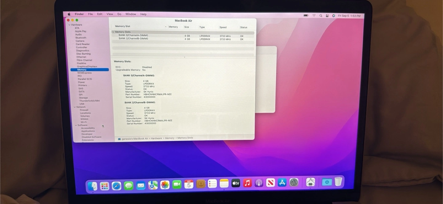 MacBook Air Pro 13 in 2020 Barely use it. Processor 1.1 GHz Quad-Core Intel Core 15 Memory 8 GB 3733 MHZ LPDDR4X Graphics Intel Iris Plus Graphics 1536 MB Price negotiable