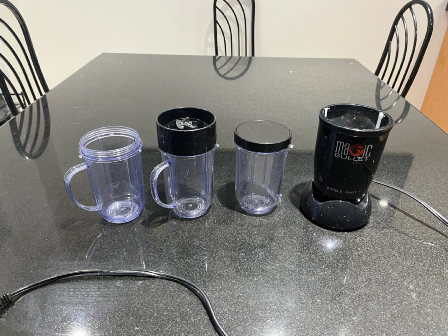 Includes power base, 1 blade, 3 cups and 1 lid.