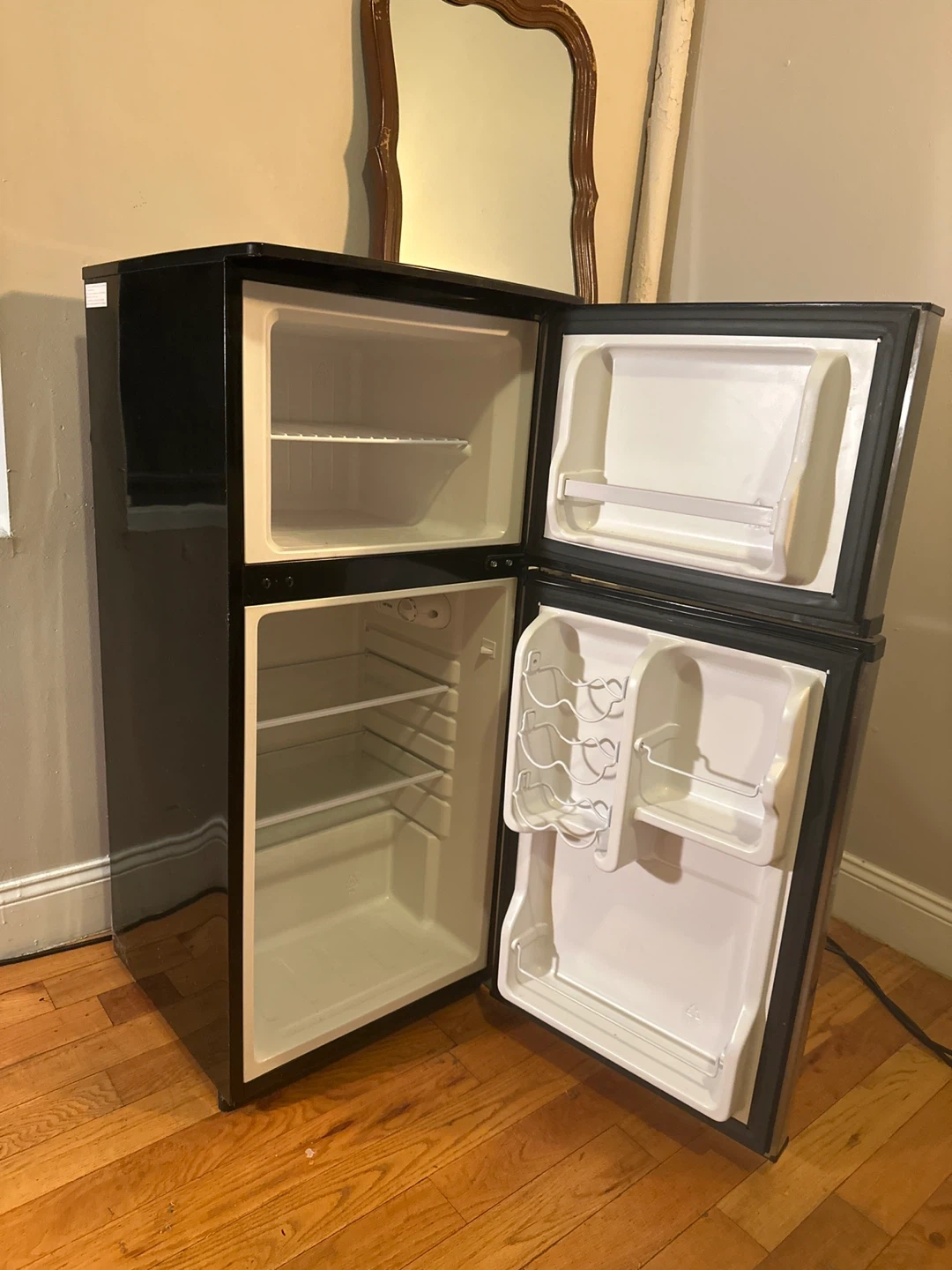 60Selling a gently used Magic Chef mini fridge! It's perfect for a dorm room, office, or small apartment. It has a sleek black and silver finish that will look great in any space.