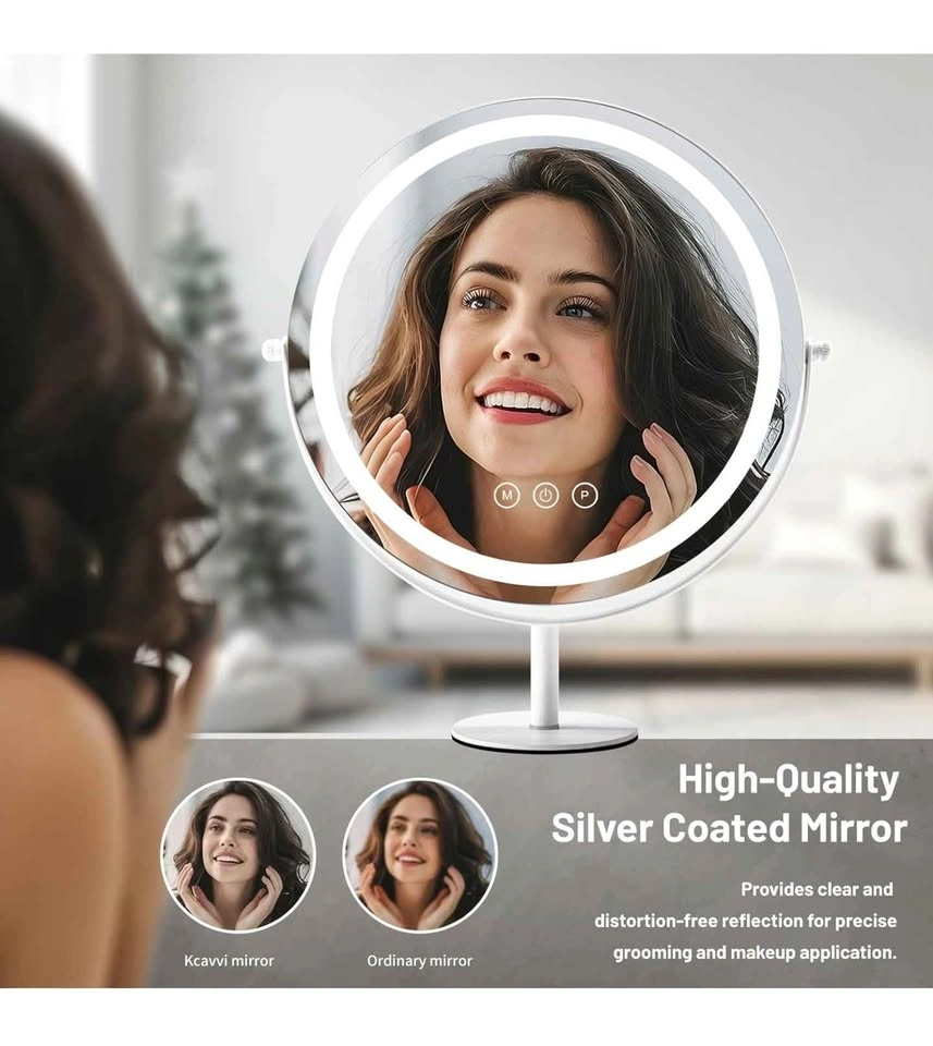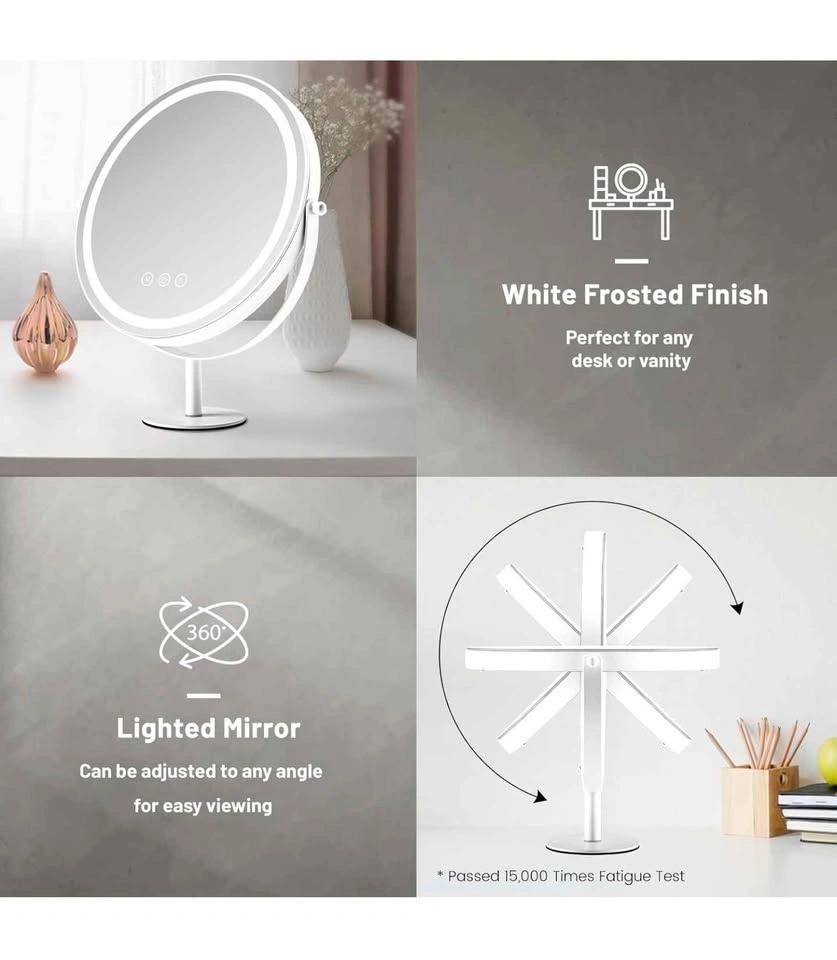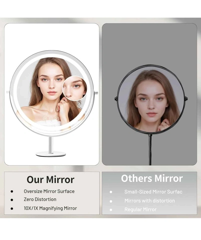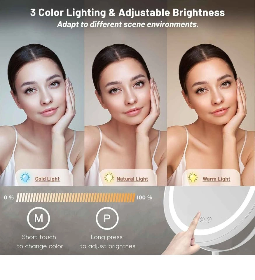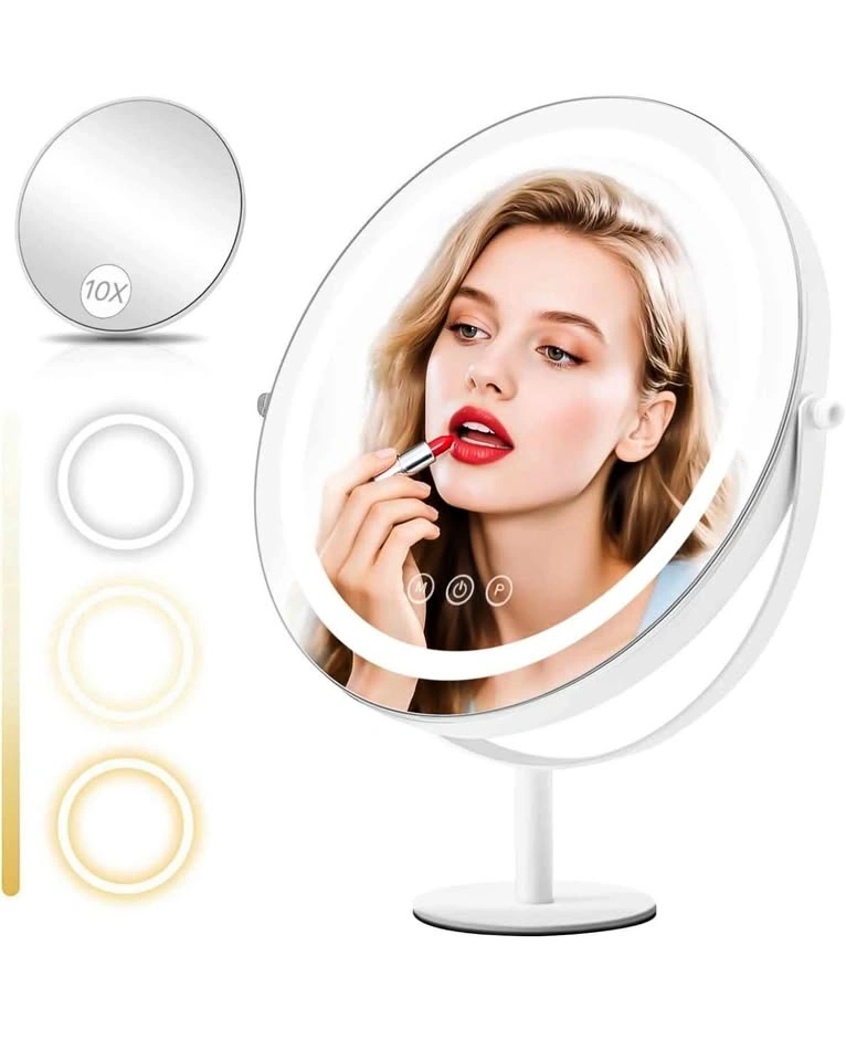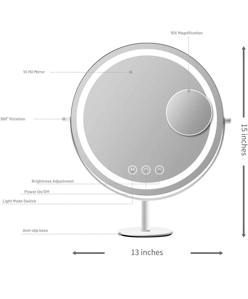 22Makeup Mirror with Lights, 1x/10x Vanity Mirror with Lights and Magnification, 3 Color Modes, Brightness Adjustable, Smart Touch Control, Large Round Vanity Mirror with Stand, 13 Inches Diameter
