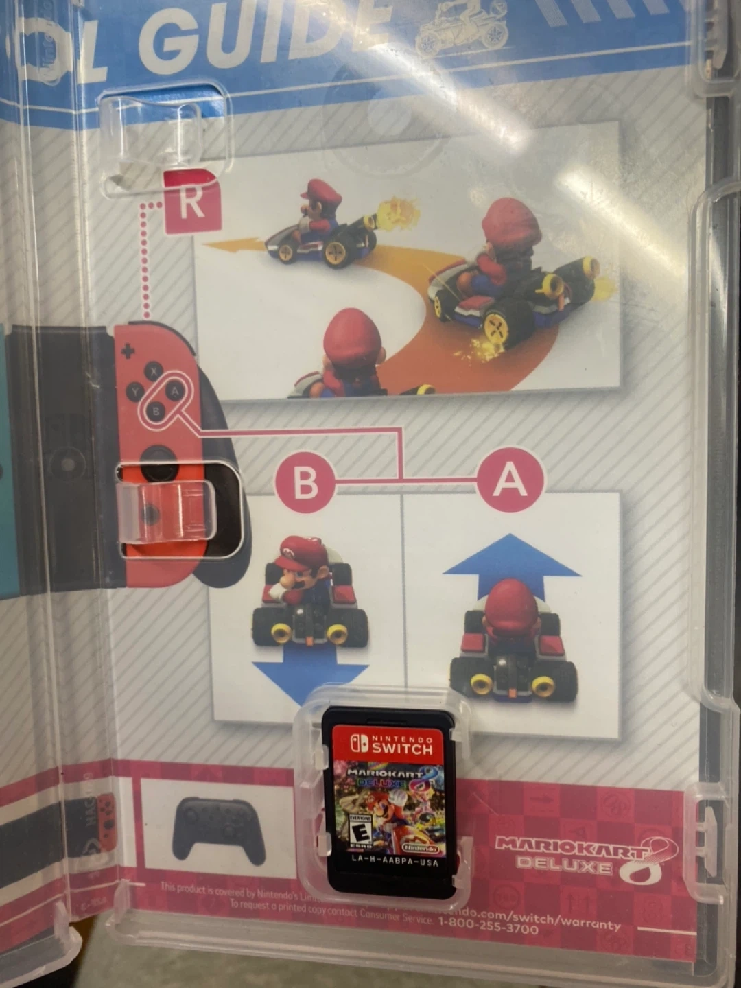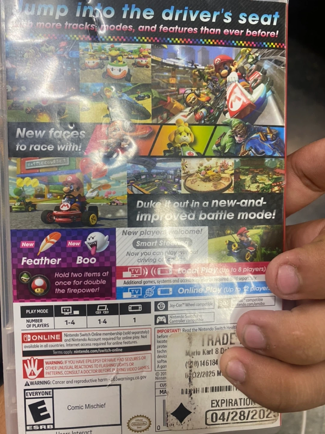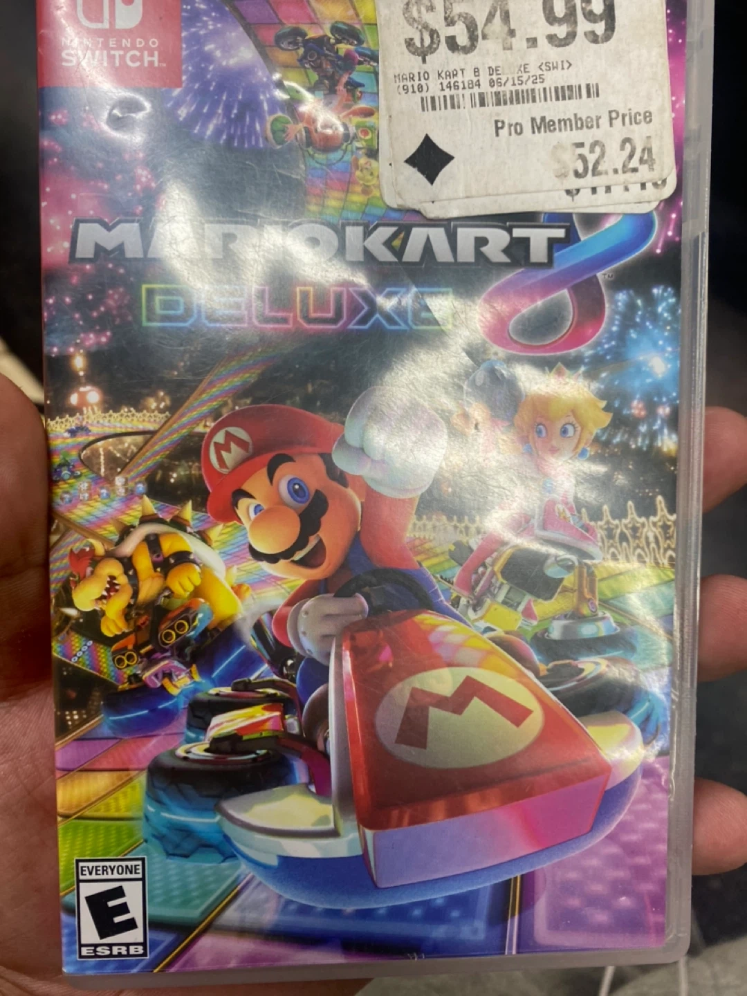 Selling Mario Kart 8 Deluxe for the Nintendo Switch! This game is in great condition and ready for a new home. It's perfect for some fun racing with friends and family. The OCR price was $54.99.