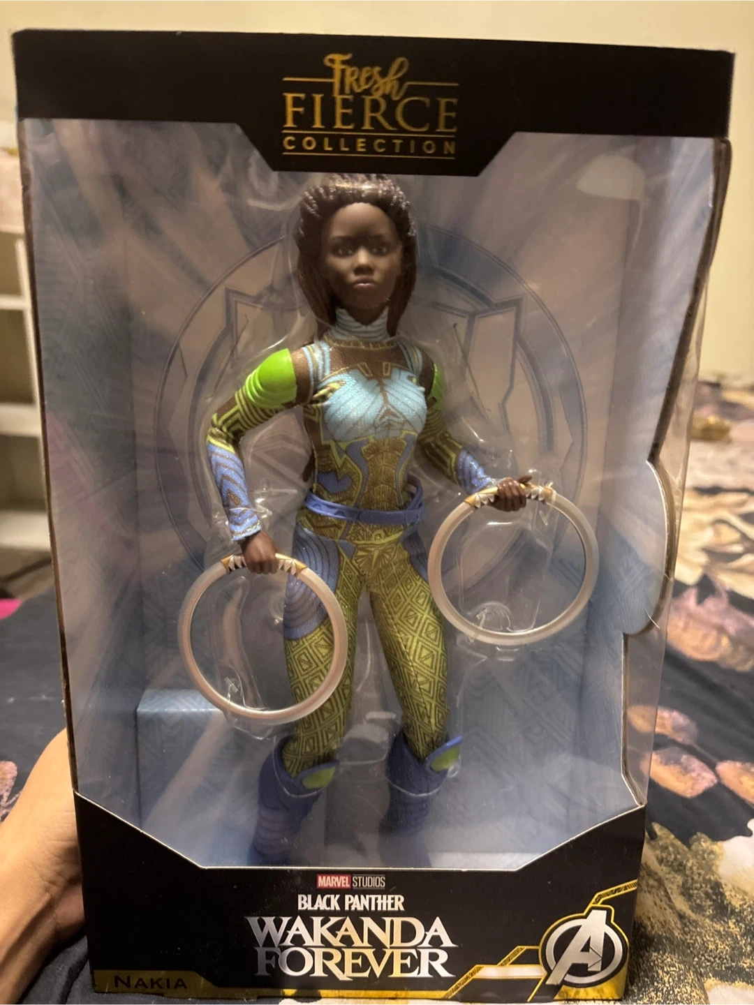 Selling a Marvel Studios Black Panther Wakanda Forever Nakia doll from the Fresh Fierce Collection! It includes a collectible doll, doll stand, and certificate of authenticity. The box is included and unopened!