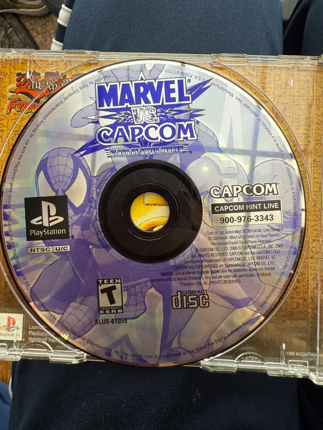 Selling a used copy of Marvel vs Capcom: Clash of Super Heroes for the original PlayStation! The game is rated T for Teen by the ESRB. It's a compact disc, ready to play on your PlayStation console. Just the disc no case.
