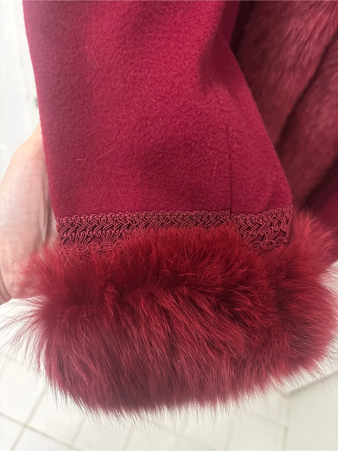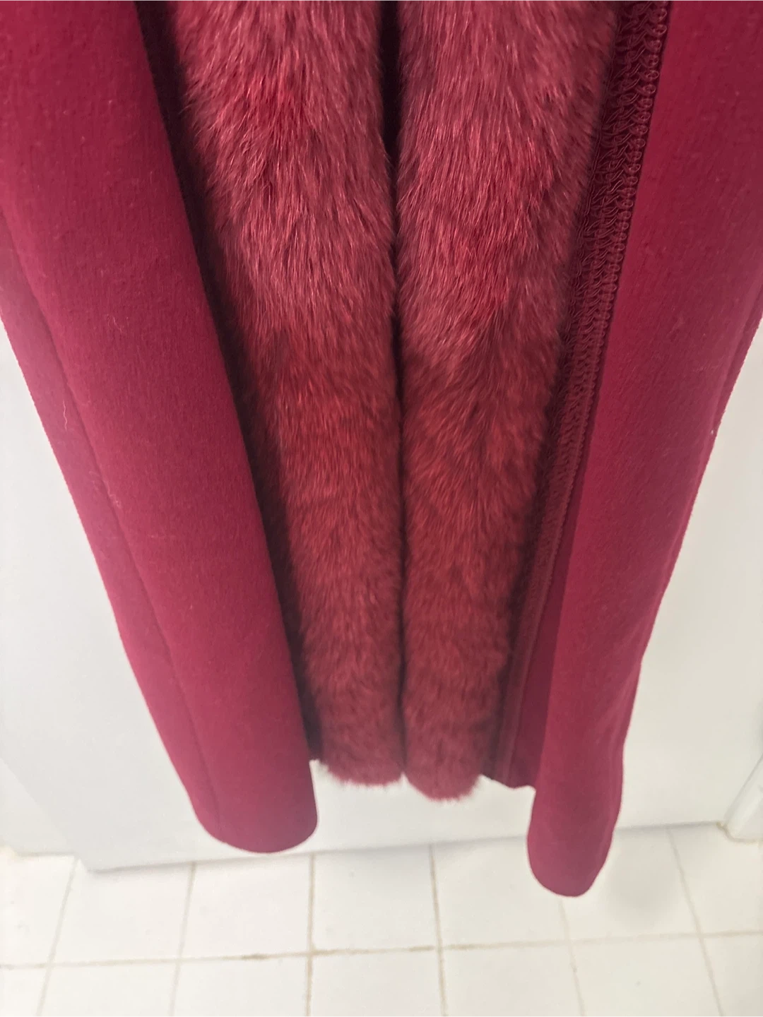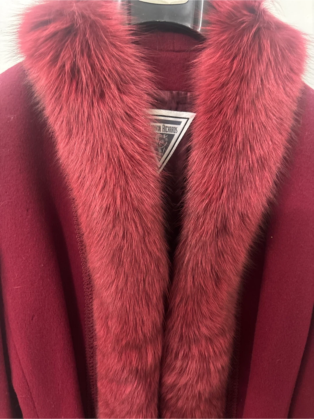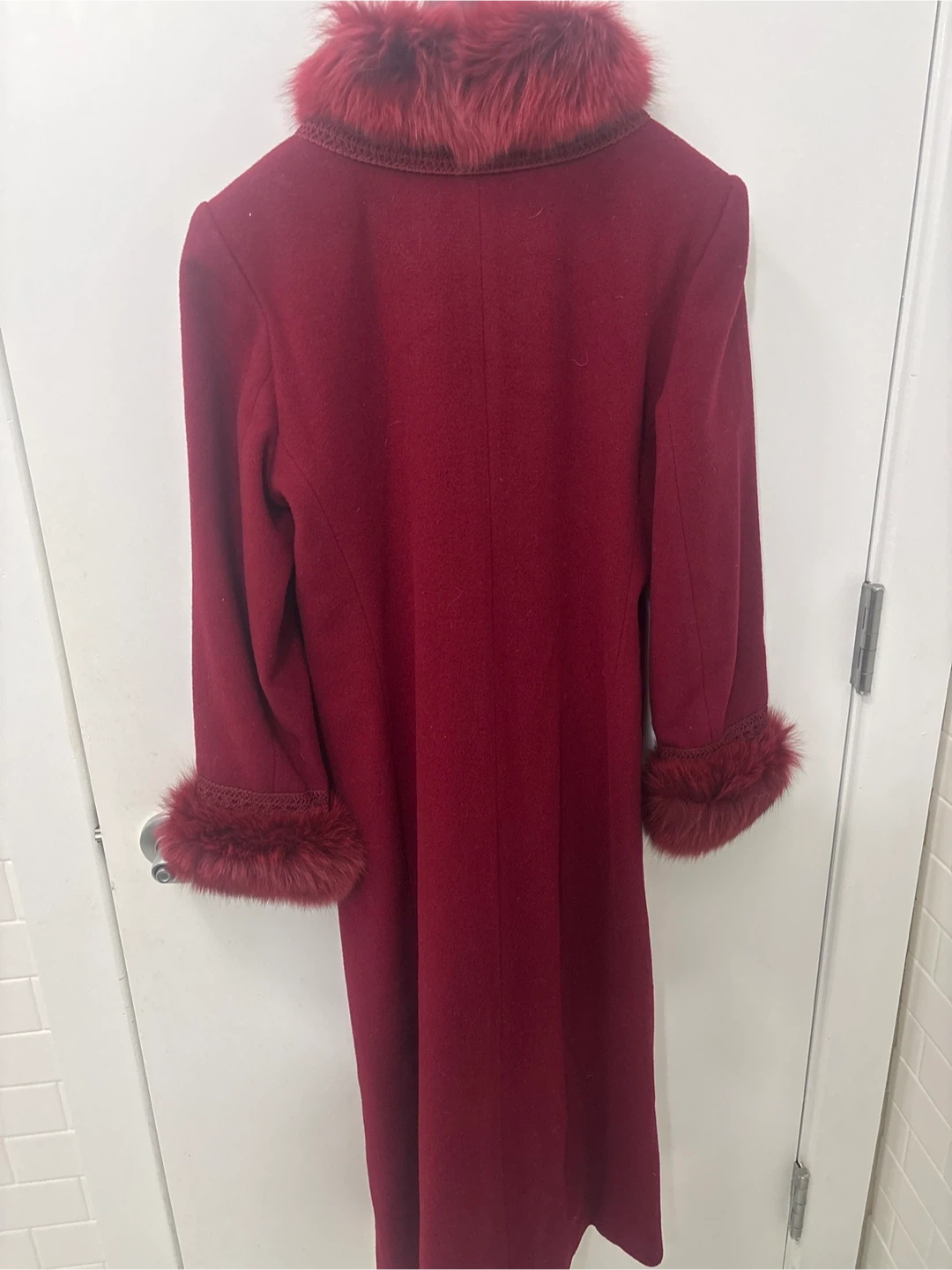 Selling a beautiful burgundy coat from Marvin Richards! It features a lovely fur trim around the collar till full length and cuffs. Perfect for adding a touch of elegance to your winter wardrobe!