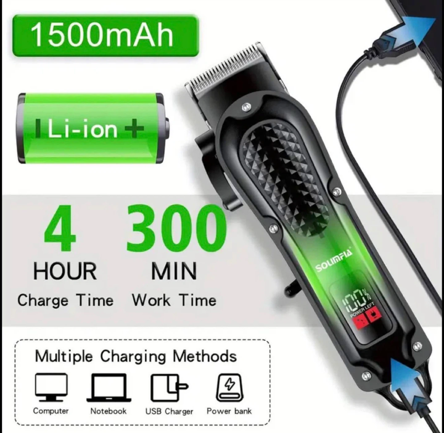 Hair Clippers for Men Professional - Cordless&Corded Barber Clippers for Hair Cutting & Grooming, Rechargeable Beard Trimmer, Home Haircut, Sleek Design, Ergonomic Grip, Highquality Trimming, Durable Blades, Grooming Tool, Barbershop Tools, Personal Grooming