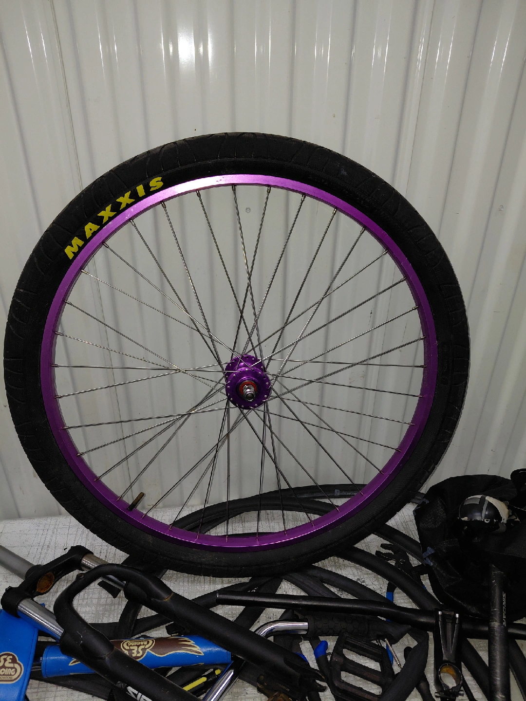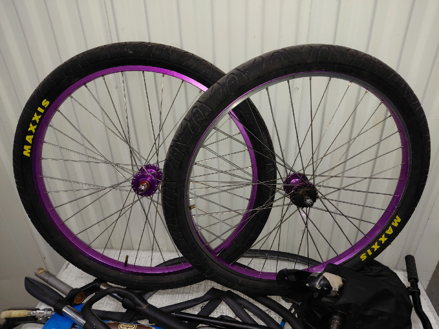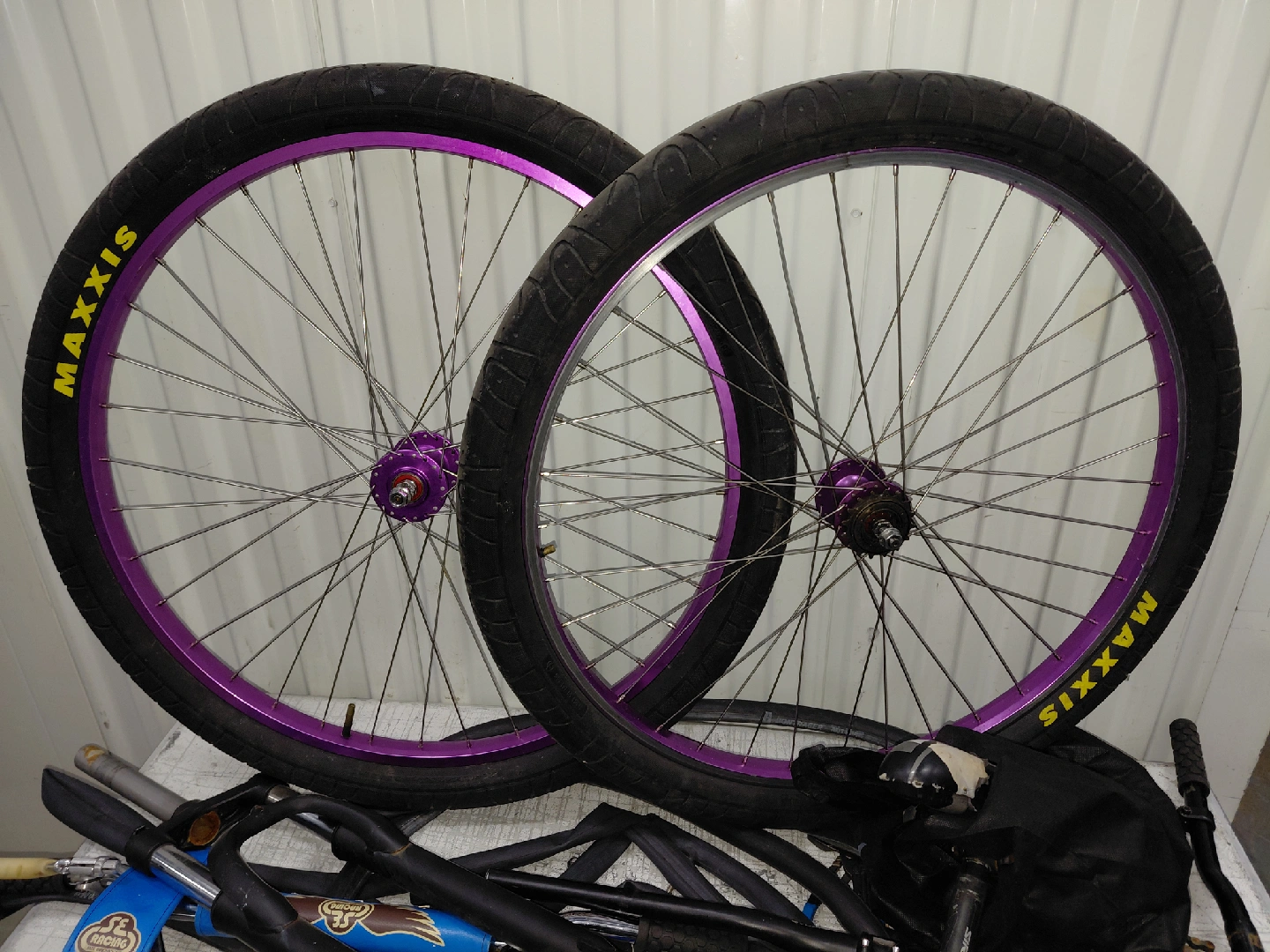 Selling a pair of Maxxis BMX bike wheels. They feature a cool purple rim and are ready to roll! set of 29er