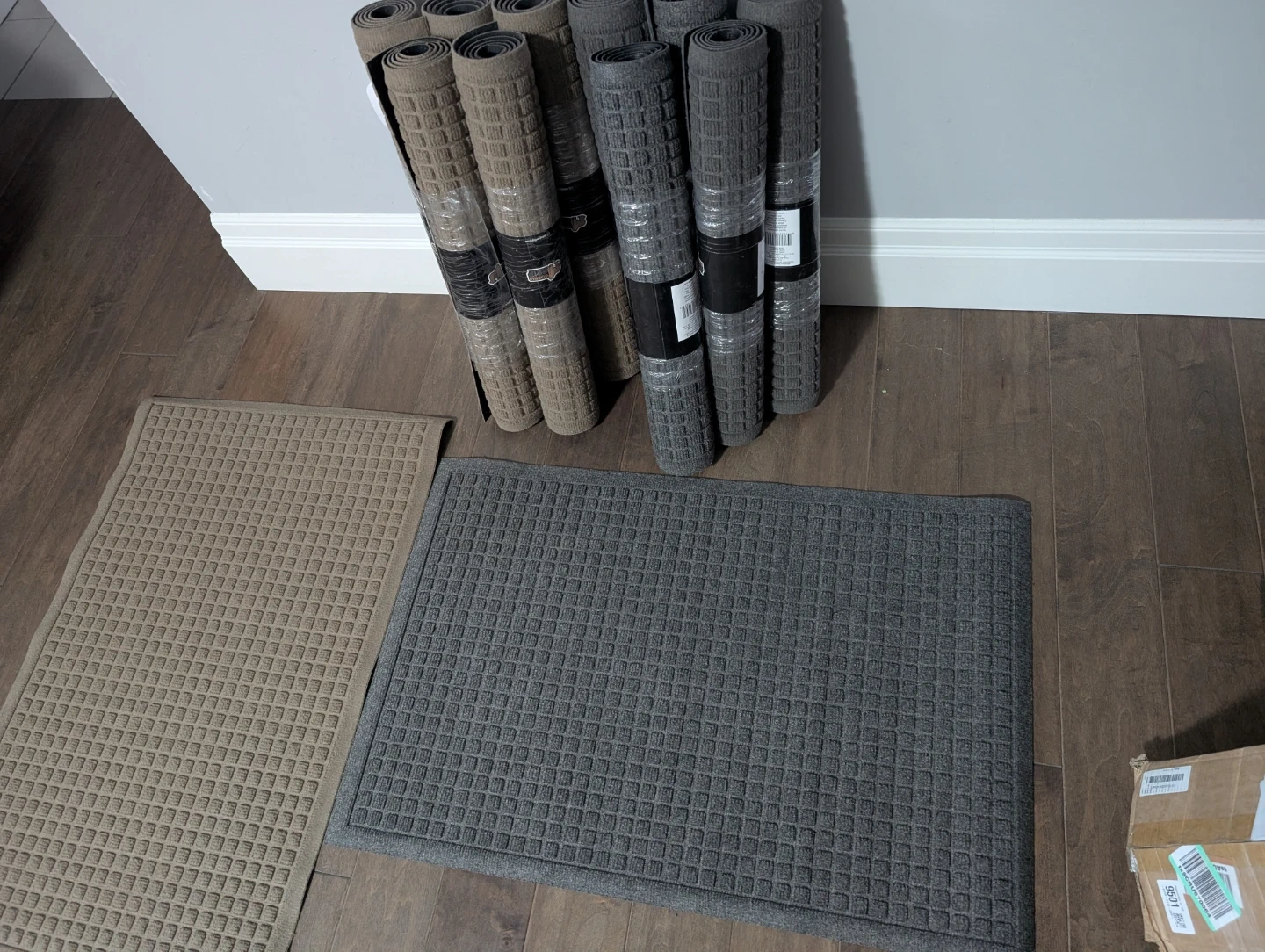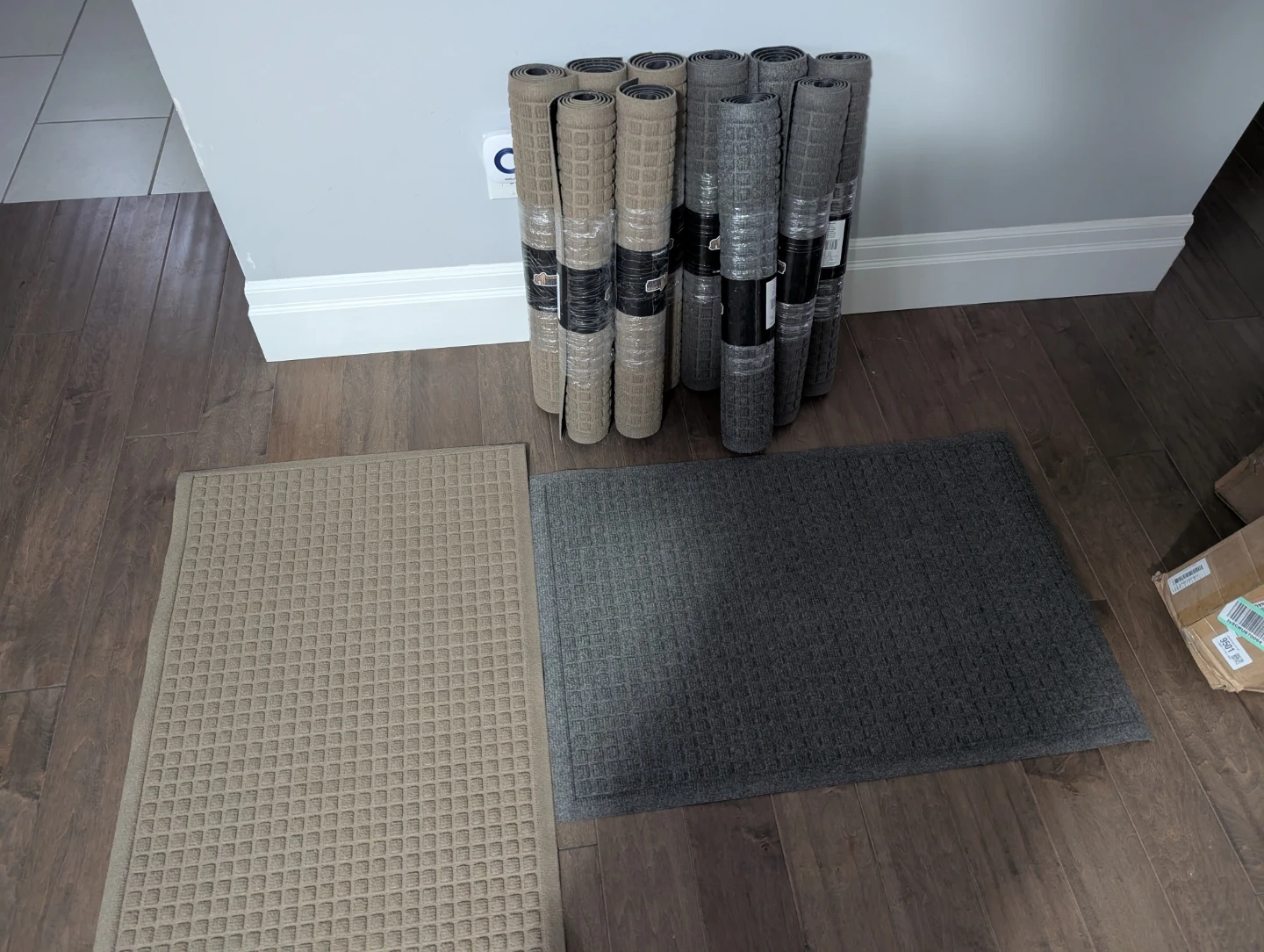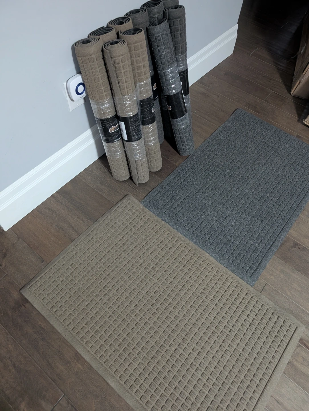 Brand new Gorilla 35x23 floor door mats for sale. 35”x23” inch in size, Gorilla Grip, indoor or outdoor, ultra absorbent, stain and fade resistant, rubber backing, captures dirt, Beige and Charcoal/Grey available. $10 FIRM each.