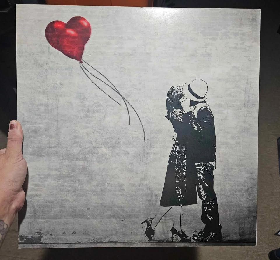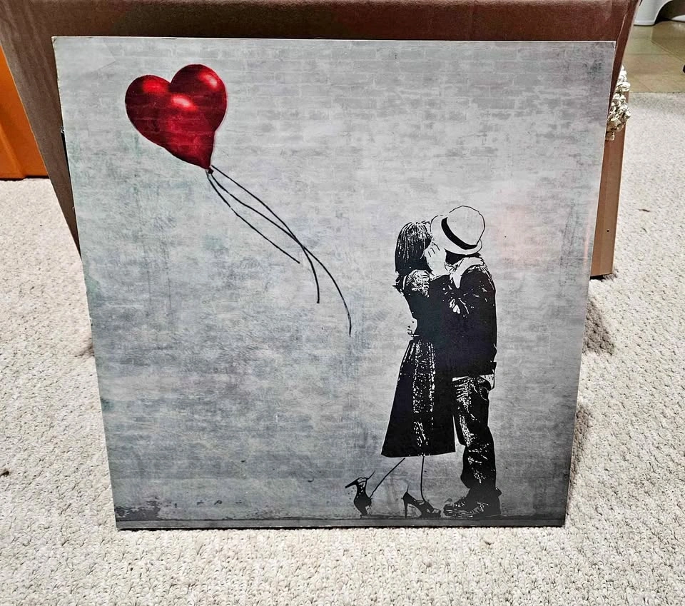 Wall Art Vintage Boy and Girl Kissing Black and White Red Balloo