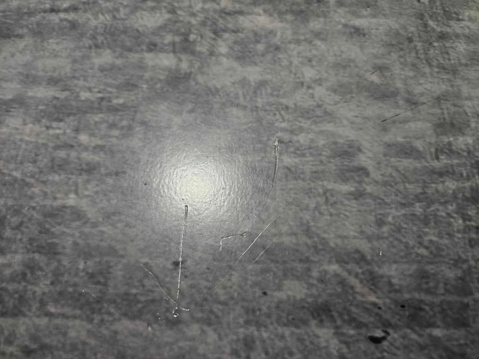 It's 16 x 16. Does have a few scratches but isn't noticeable unless you're looking for them.
