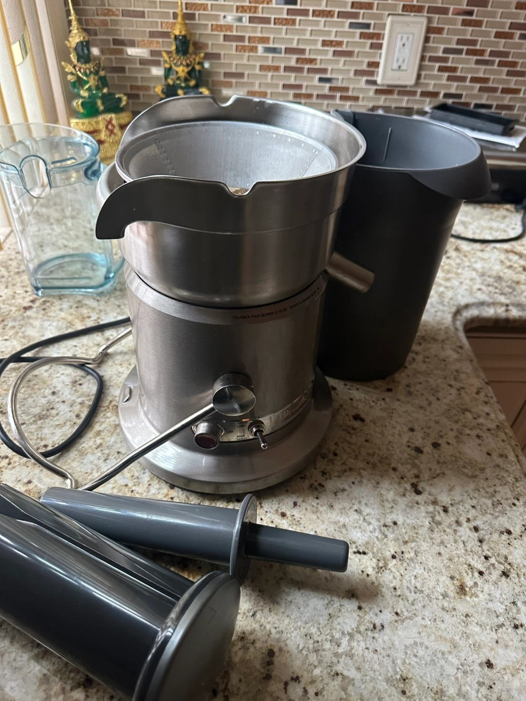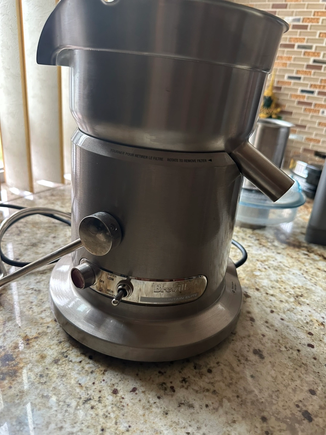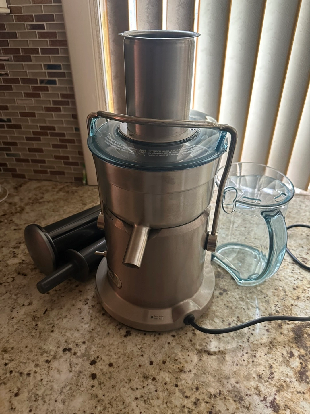 This juicer, made of stainless steel, is an easy way to make fresh juice. The item has some extra parts, a pitcher and a waste container. It will easily fit on your countertop. Im selling a powerful juicer here…a Breville Juice Fountain Elite 800JEXL which is a high-performance electric juicer designed for professional use. It has a powerful 1000-watt motor that operates at speeds of up to 13,000 RPMs, which can extract up to 30% more juice compared to conventional juicers. So this would be amazing in your home !