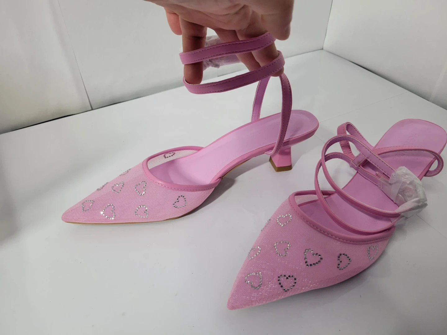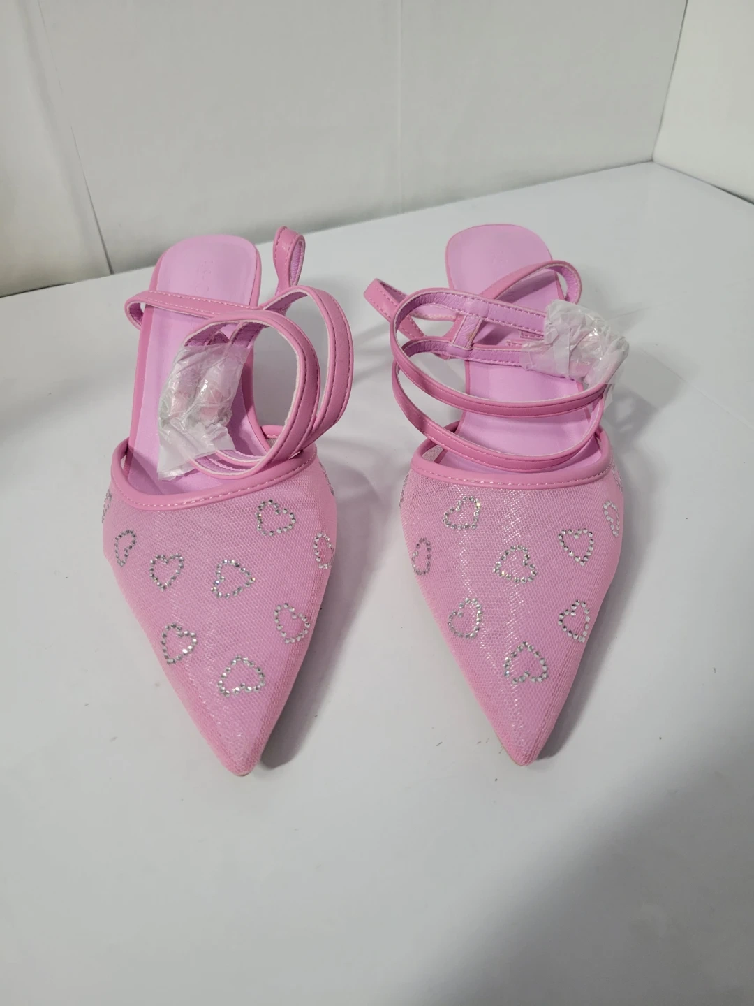 NEW Pink Heart Embellished Slingback Heels, size 8 (48)