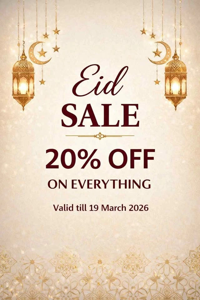 Celebrate Eid with 20% off everything! Visit our profile, choose anything you like, and enjoy 20% off storewide. Offer valid until 19 March 2026! Make this Eid extra special with amazing festive savings from Chauhan Collections.